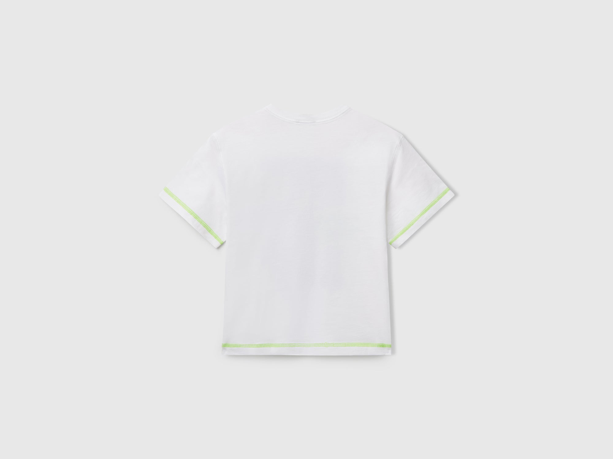 Maglietta girocollo a manica corta dalla vestibilità rilassata. Stampa fotografica sul davanti con dettagli fluo in rilievo. Questo capo è realizzato al 100% con cotone biologico certificato OCS. Certificato da ICEA - ICEA - TX - 611. I prodotti certificati secondo l'Organic Content Standard (OCS) contengono contenuti biologici che sono stati verificati in modo indipendente in ogni fase della filiera, dal riciclatore al prodotto finito.