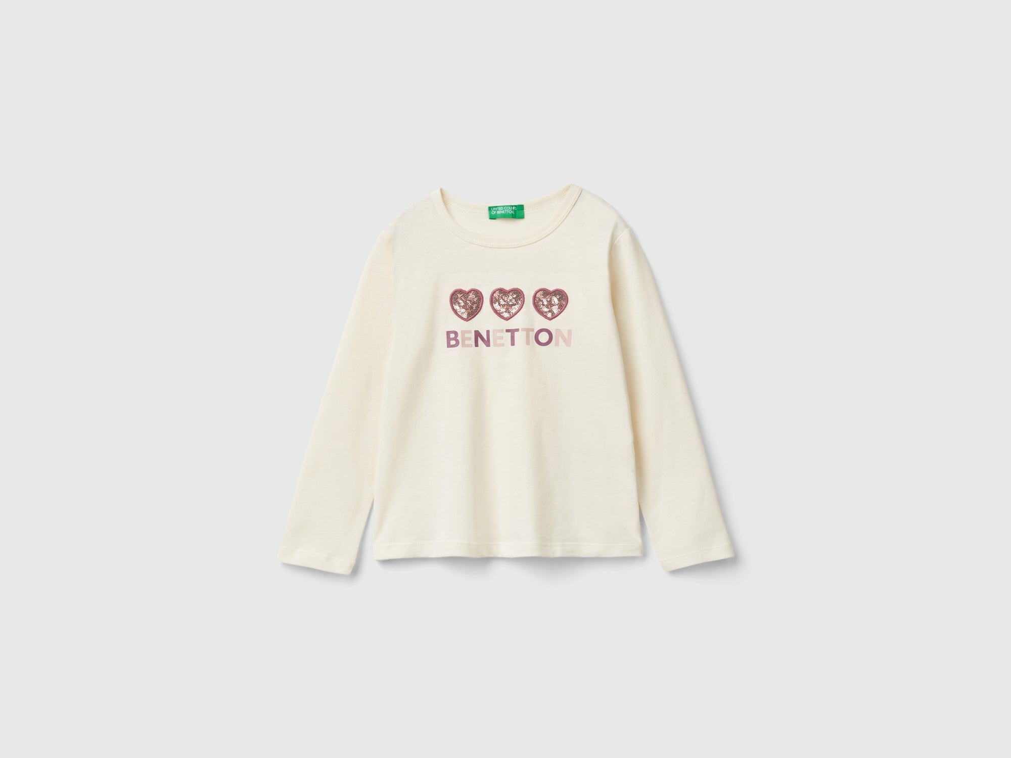 T-shirt in pure organic cotton with a warm feel. Regular fit, round neck and long sleeves. Front print with embroidery and sequins, to brighten up any everyday look. Item made with material containing at least 95% organic cotton.