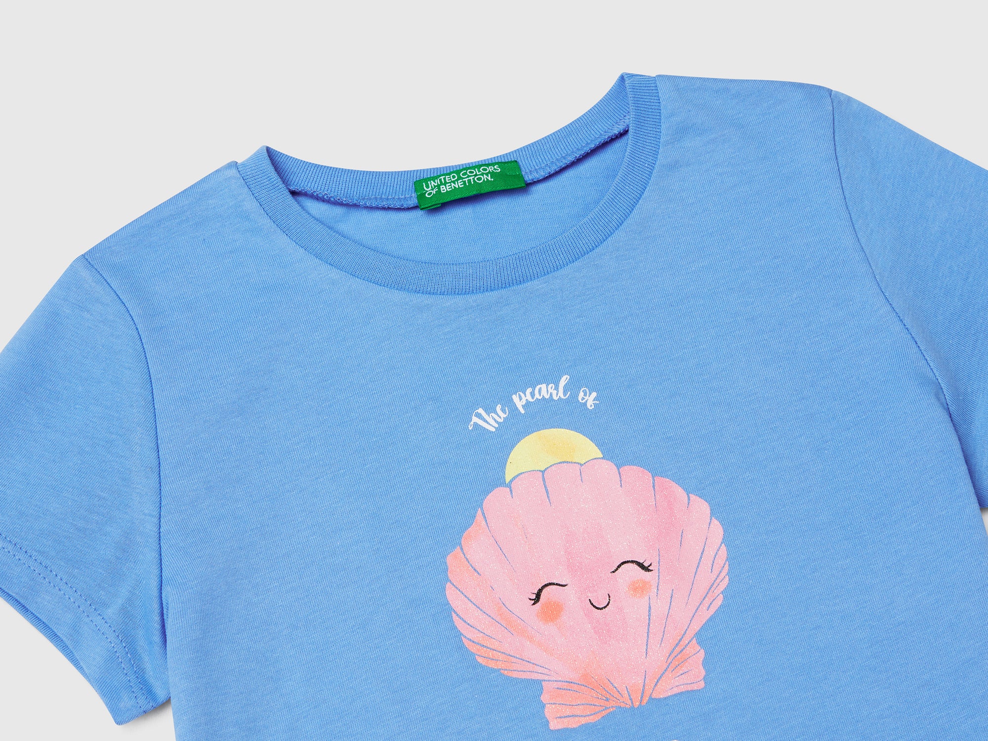 Maglietta girocollo a manica corta in puro cotone. Vestibilità regolare e stampa frontale con dettagli glitterati. Fresca e leggera, da indossare tutti i giorni. Articolo realizzato con materiale contenente almeno il 95% di cotone biologico.