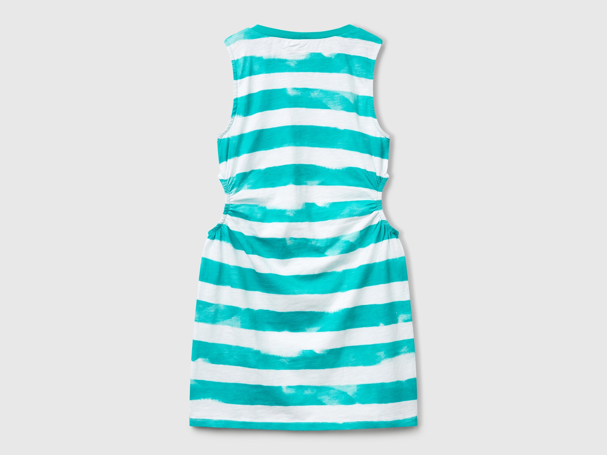 Abito girocollo smanicato in cotone leggero a righe. Vestibilità regolare, apertura ad oblò con elastici sui fianchi. Per outfit dinamici e pieni di allegria.