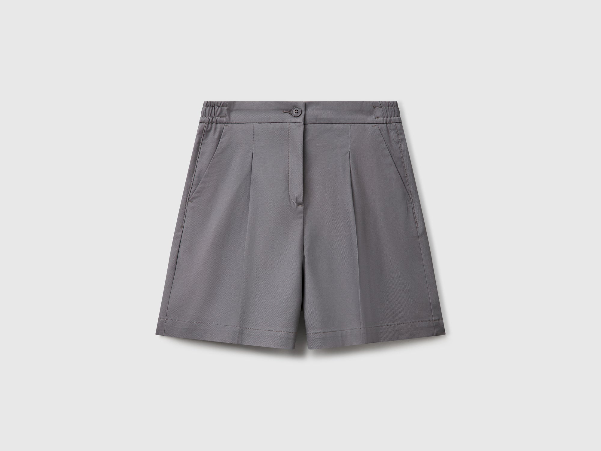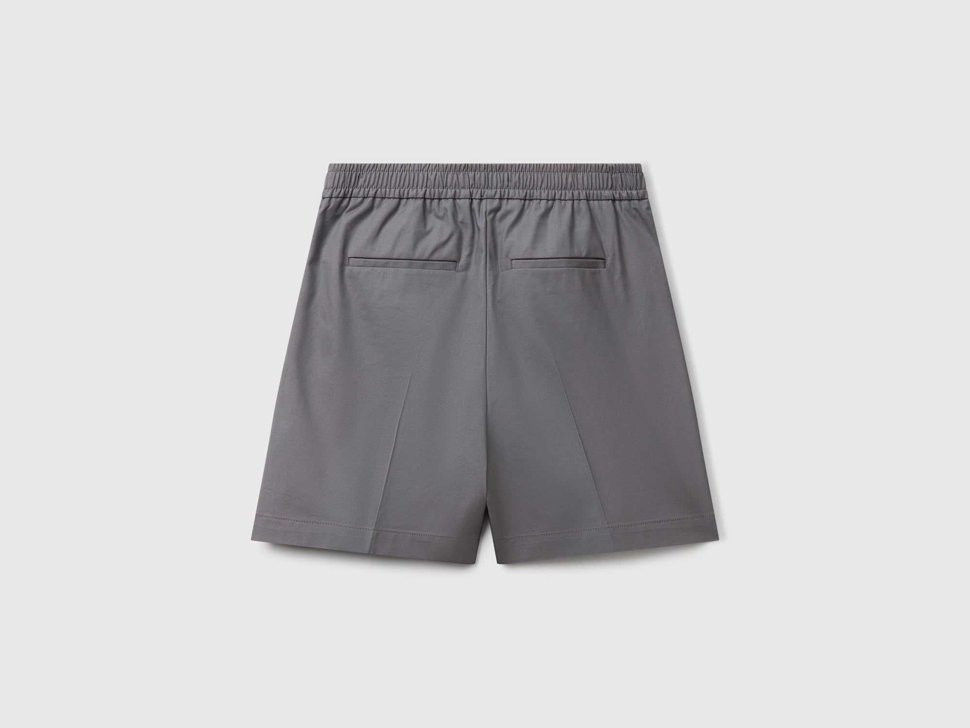 Pantaloni corti in cotone elasticizzato con gamba dritta. Vita con elastico interno sul retro e sui fianchi, apertura con cerniera e bottone. Pinces e tasche frontali, taschini a filetto sul retro. Perfetti per il tempo libero.