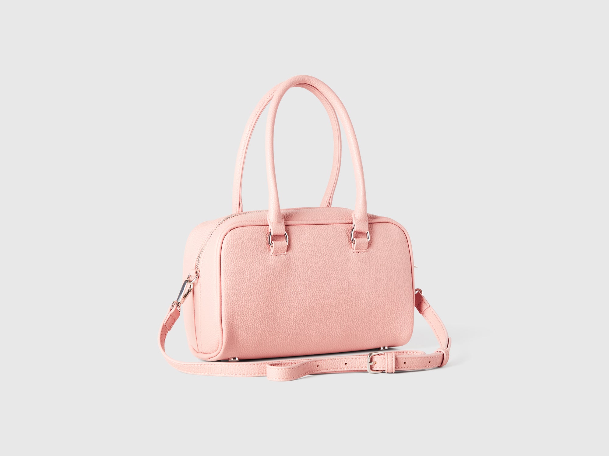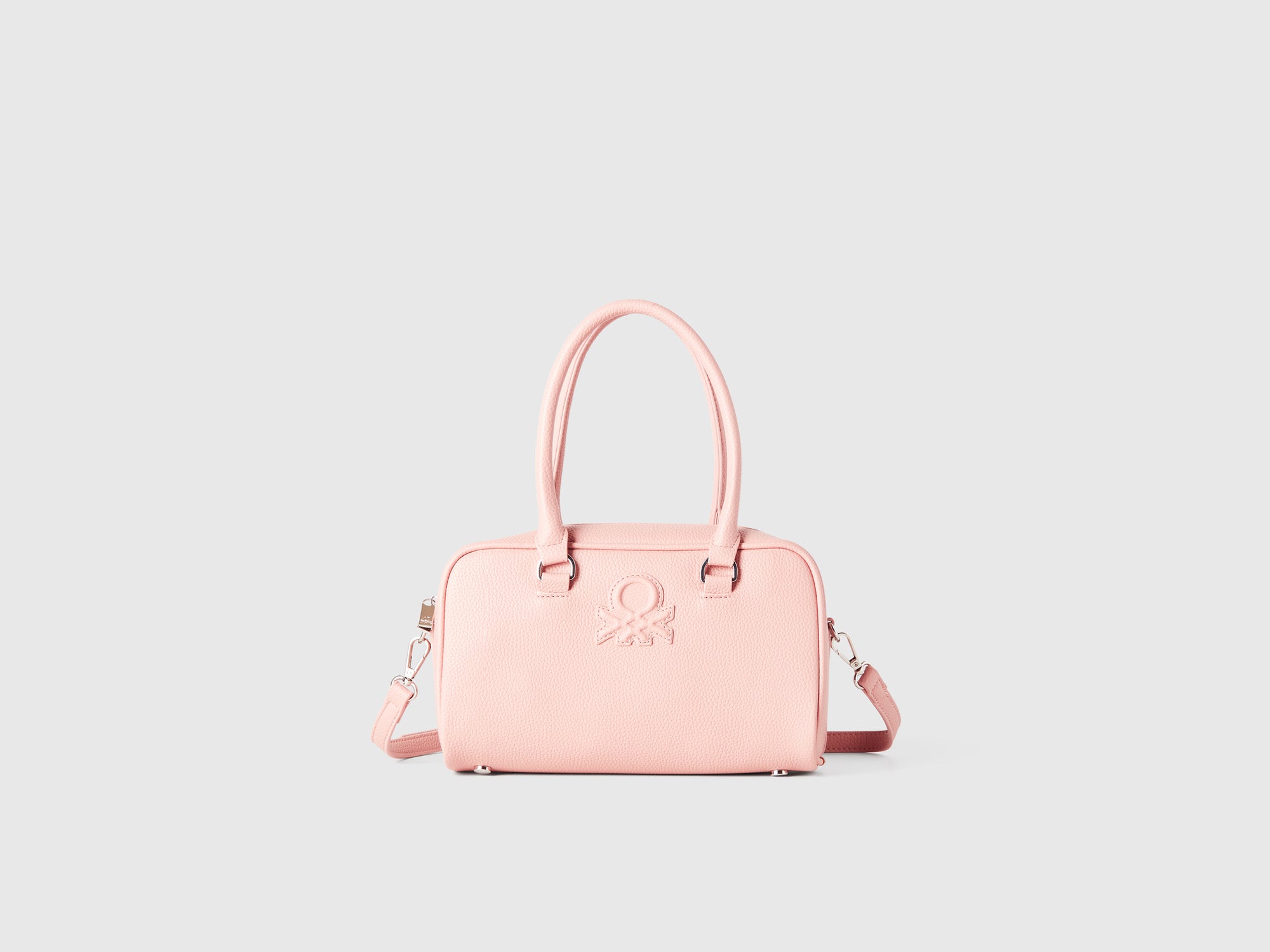 Borsetta piccola a mano in tessuto spalmato con leggera trama a rilievo. Pratici doppi manici e tracolla regolabile e rimovibile. Comoda apertura a zip e logo in rilievo su un lato. Cool e funzionale, perfetta per abbinamenti quotidiani.