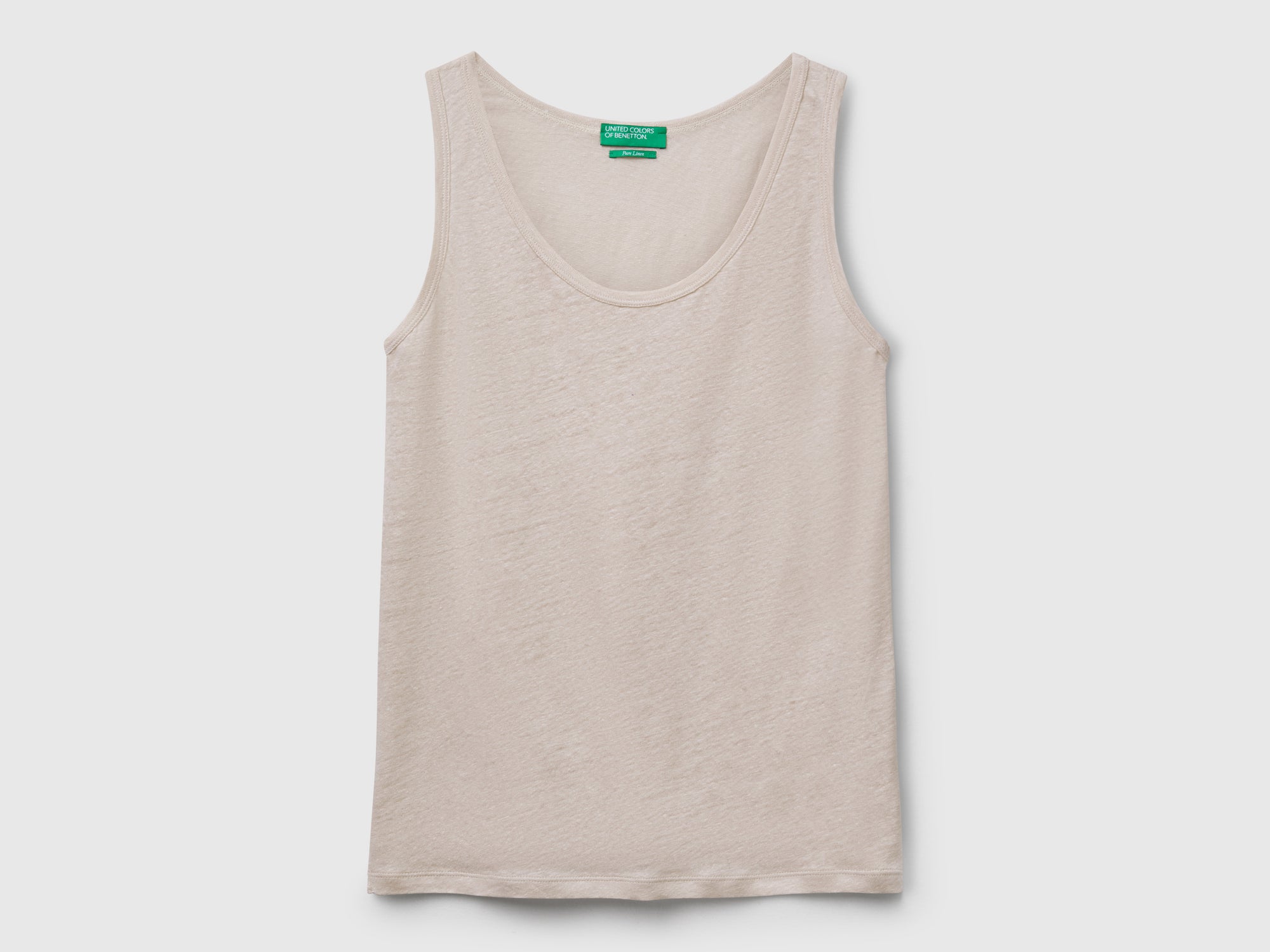 Canotta in tessuto morbido e leggero di puro lino. Vestibilità regolare con scollo rotondo e spacchetti laterali. Un capo basico ma versatile, per abbinamenti quotidiani.