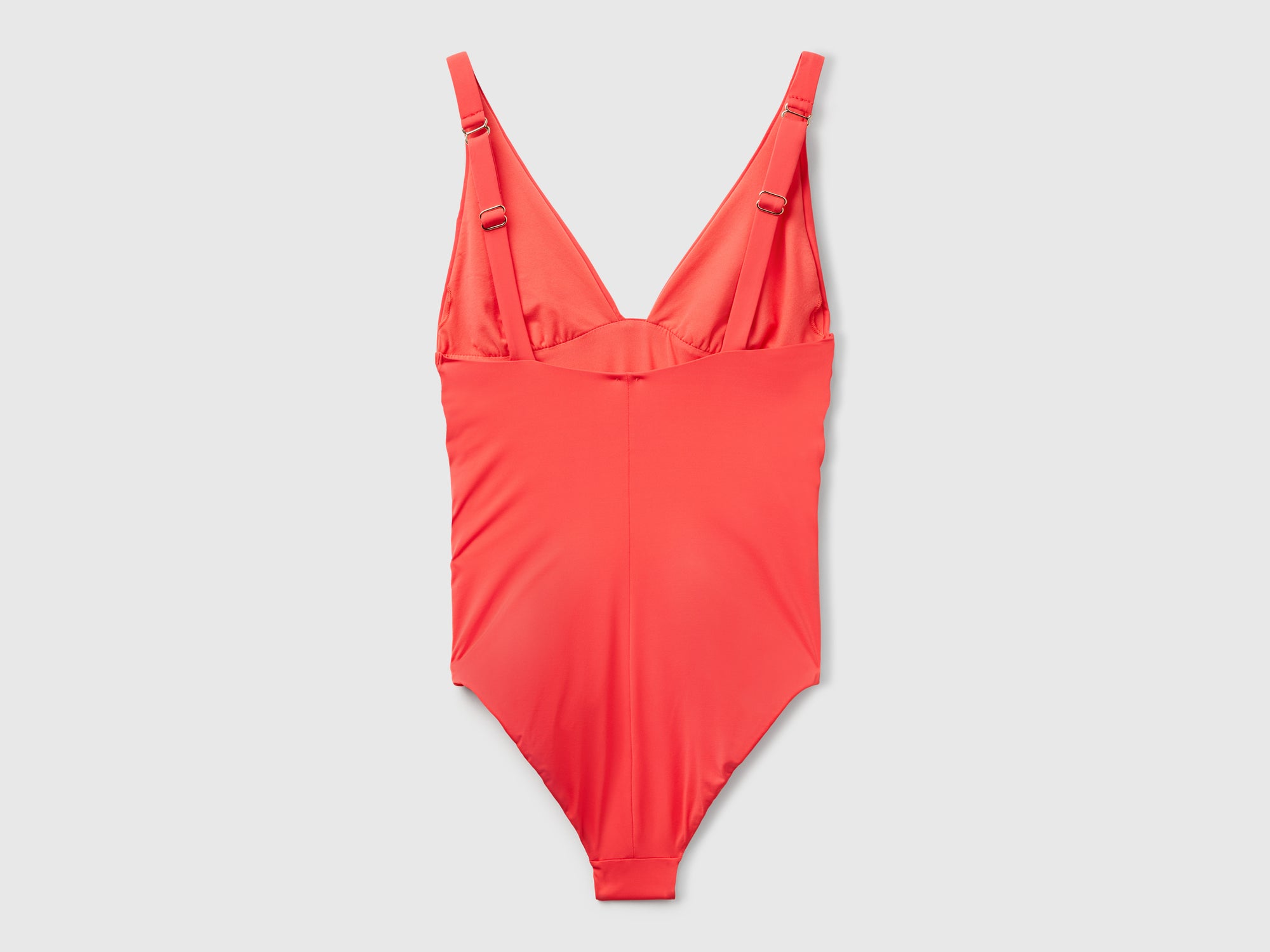 - Main features: Stretch one-piece swimsuit with a V-neck. Adjustable thin straps and a light gathering at the belly. This garment contains ECONYL®, a 100% regenerated nylon fiber made from used fishing nets and other nylon waste. ECONYL® stretch; Lined