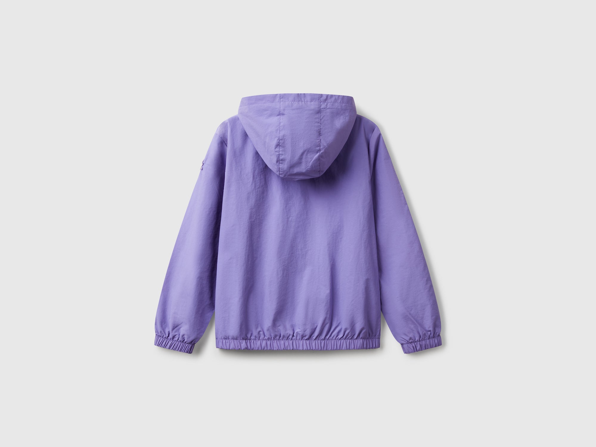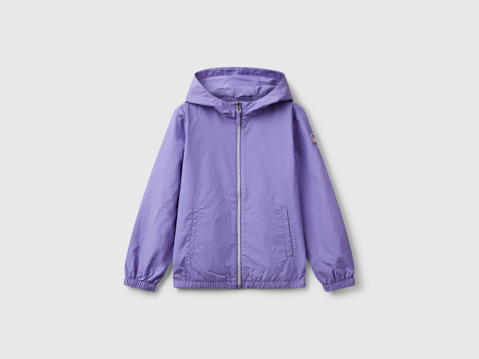 Giubbino con cappuccio in nylon lucido "Rain Defender", foderato in puro cotone. Comoda apertura a zip e tasche sul davanti, elastico interno su polsi e fondo. Perfetto per le mezze stagioni, da indossare sopra un maglione o una felpa.