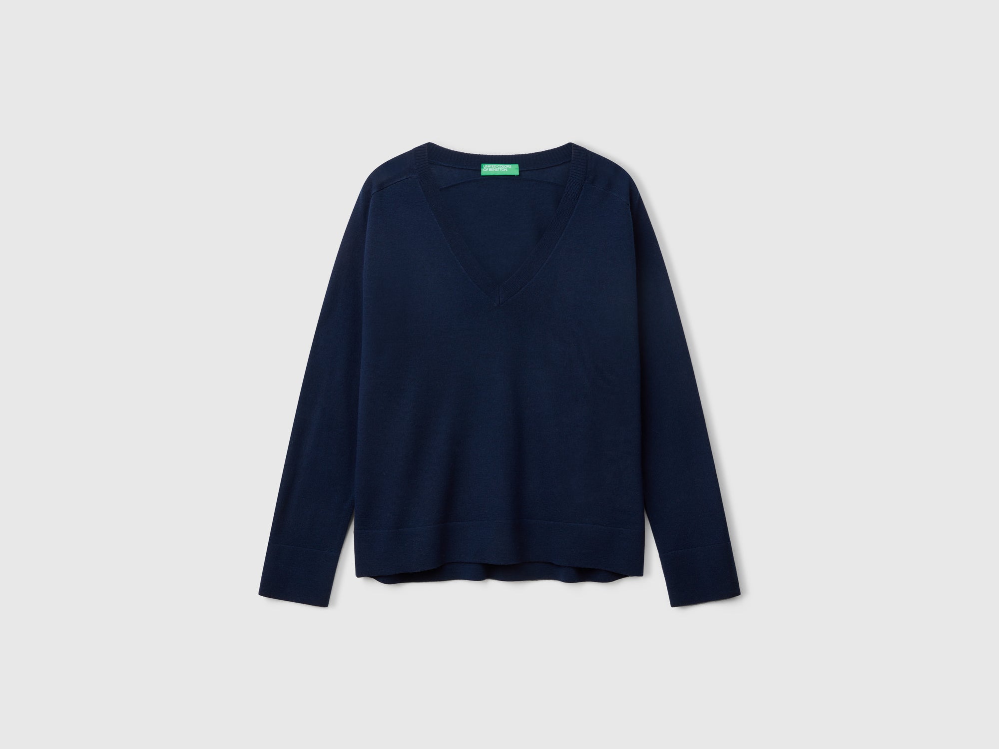 V-neck sweater in pure Merino wool da donna blu scuro | Benetton Outlet