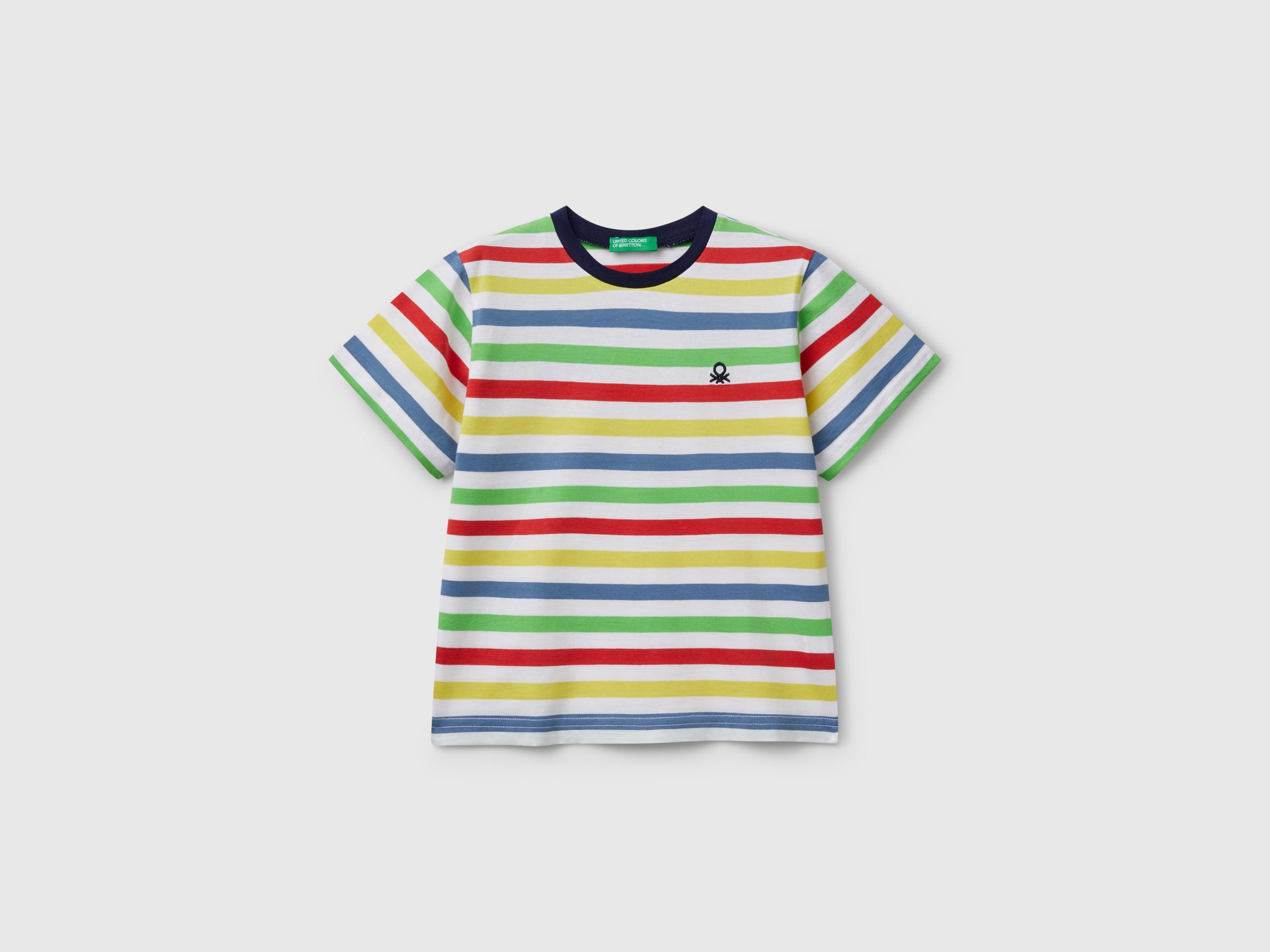 T-shirt girocollo a manica corta in puro cotone tinto filo. Vestibilità regolare e logo ricamato lato cuore. Perfetta per la bella stagione, con classico motivo a righe orizzontali.