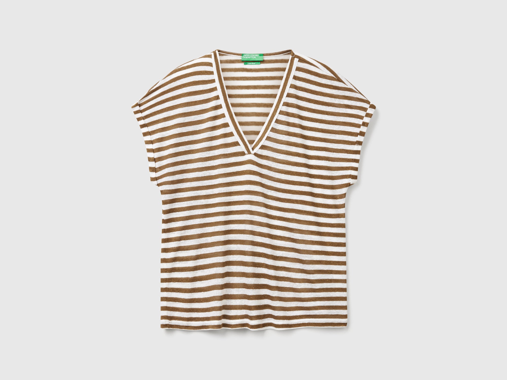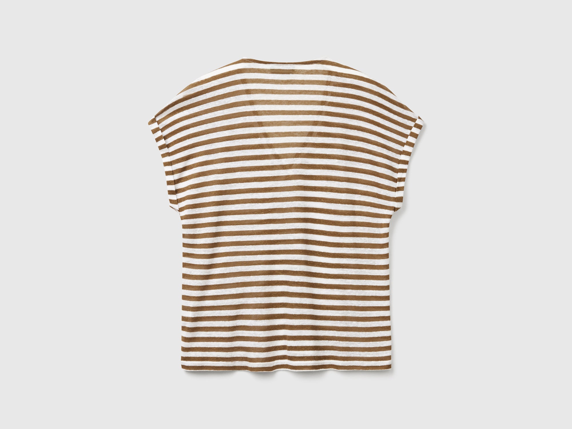 Striped linen blend T-shirt da donna marrone | Benetton Outlet Striped linen blend T-shirt da donna marrone 2 | Benetton Outlet