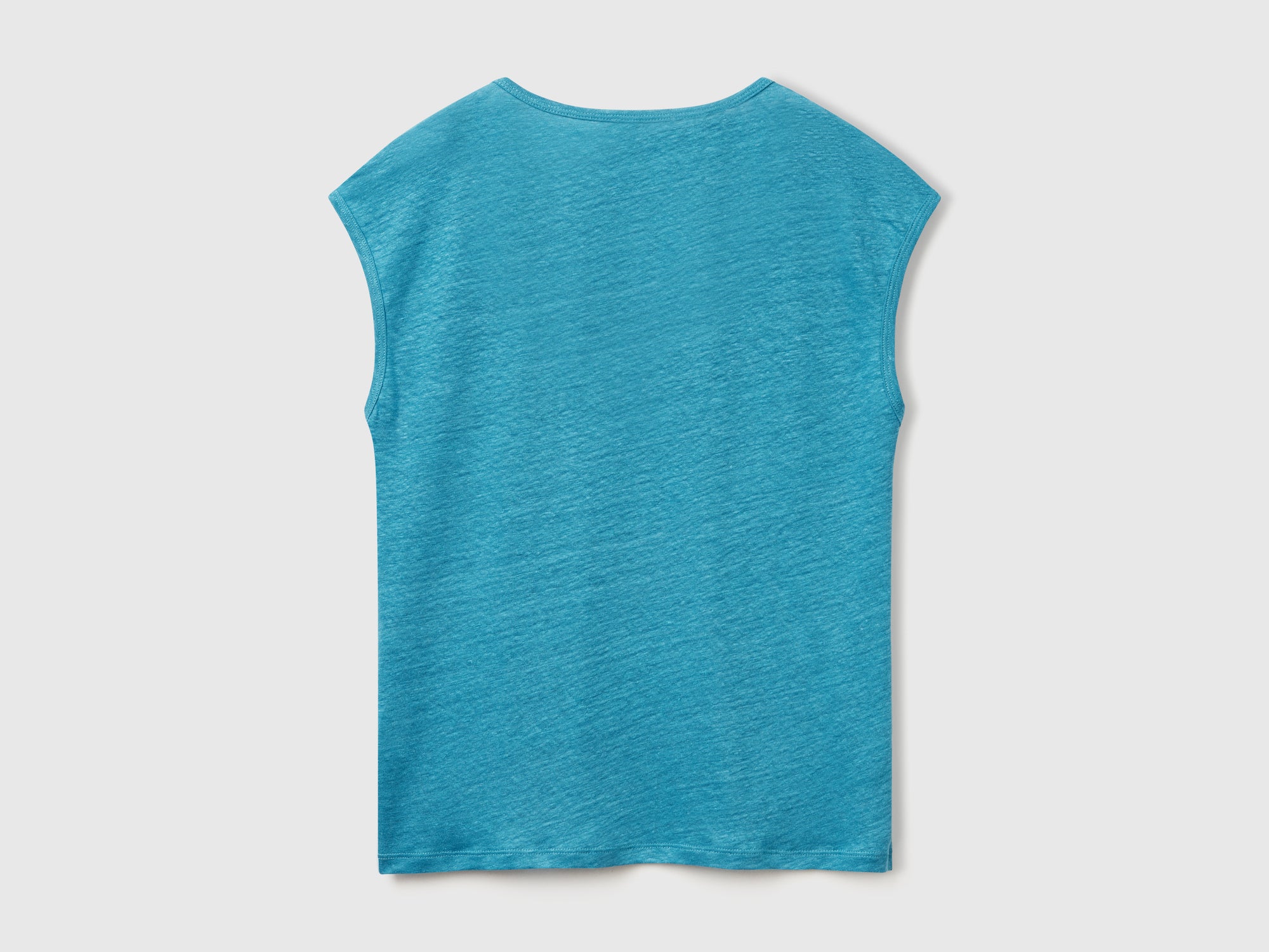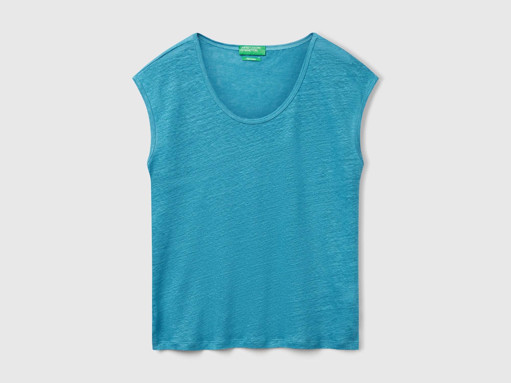 Maglietta scollo ampio in puro lino da donna turchese | Benetton Outlet Maglietta scollo ampio in puro lino da donna turchese 2 | Benetton Outlet
