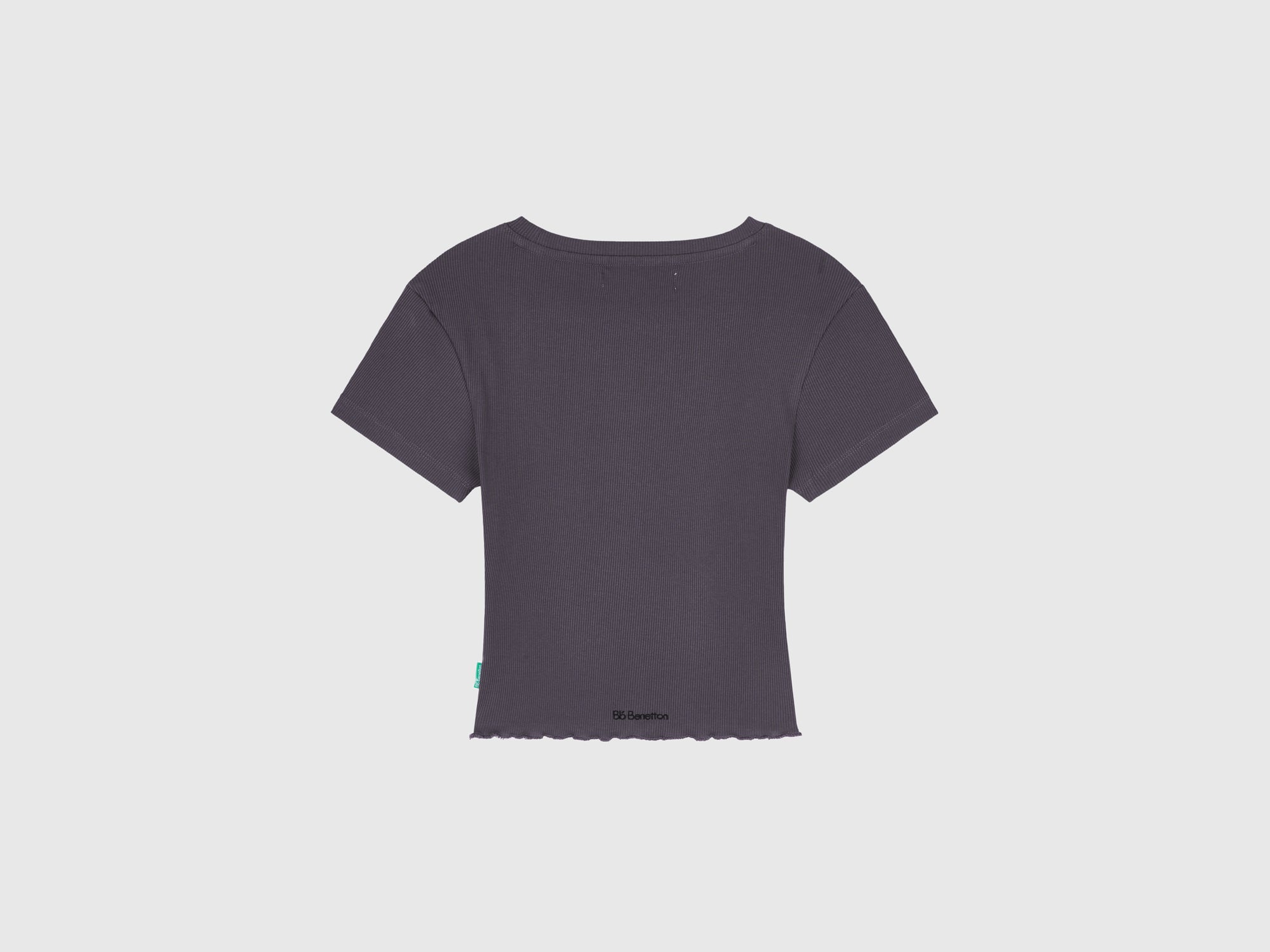 T-shirt girocollo a manica corta in misto cotone a costine. Vestibilità aderente e bordo ondulato sul fondo. Perfetta con un paio di jeans.