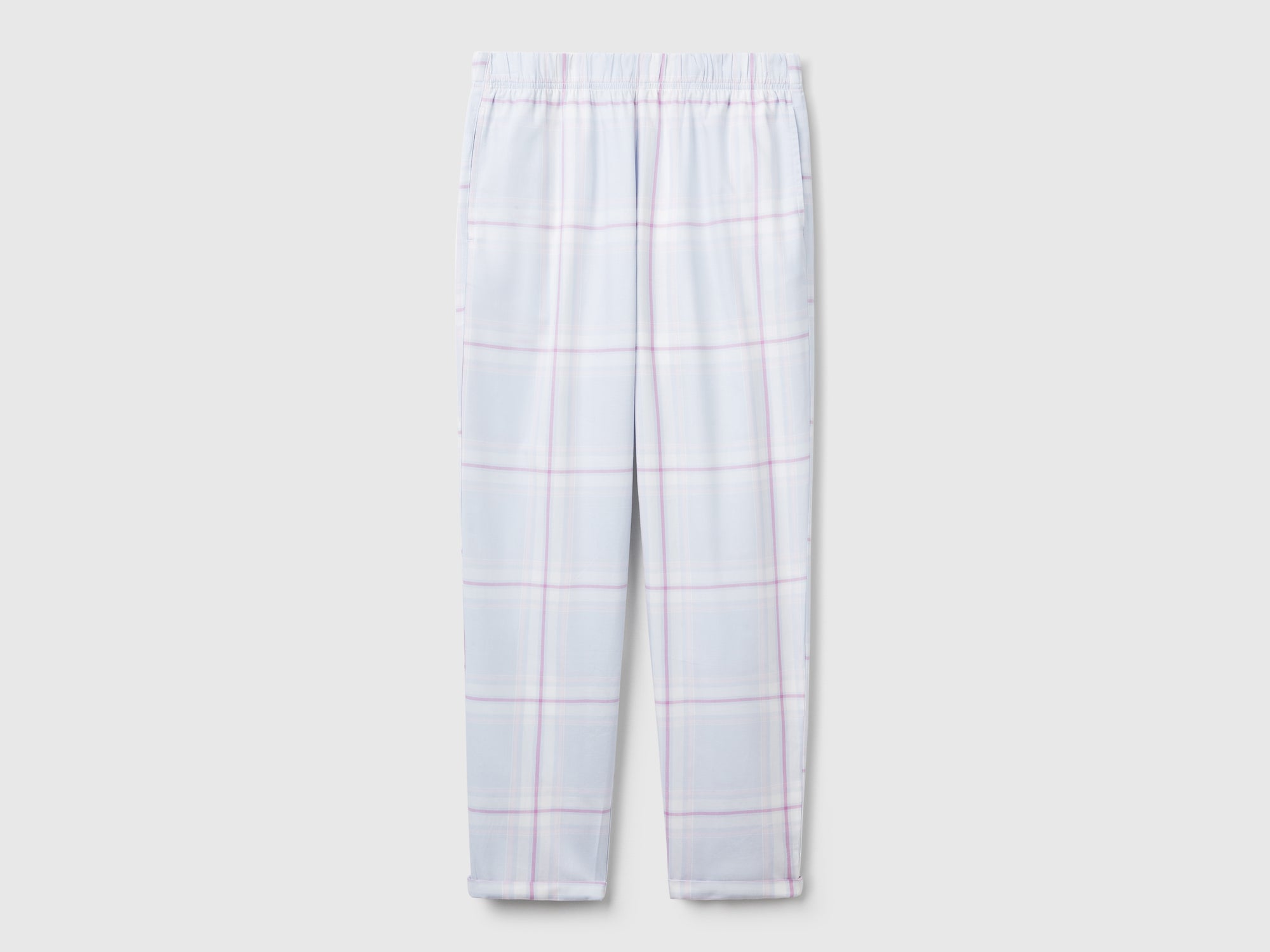 Long pajama pants in soft pure cotton fabric. Elasticated waistband and yarn-dyed checked pattern. 100% cotton.