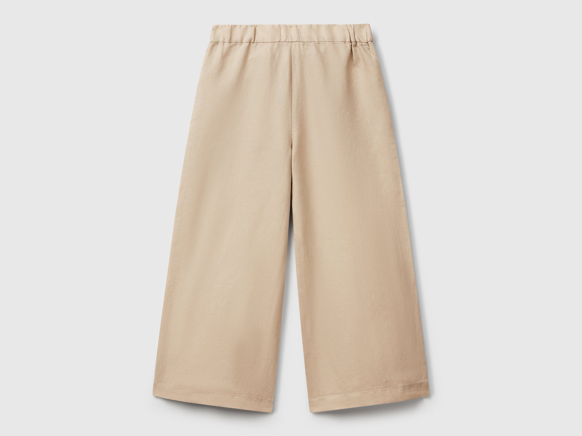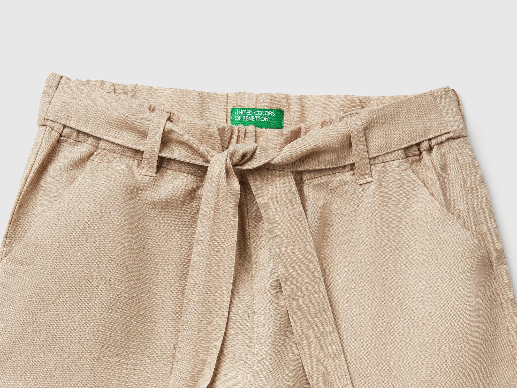 - Main features: Long trousers in a soft linen and cotton blend. Elasticated waistband at the back and a sewn-in sash. Loose-fitting legs and diagonal front pockets. Made with a material containing at least 50% European-grown linen. Linen and cotton blend; Belt loops.