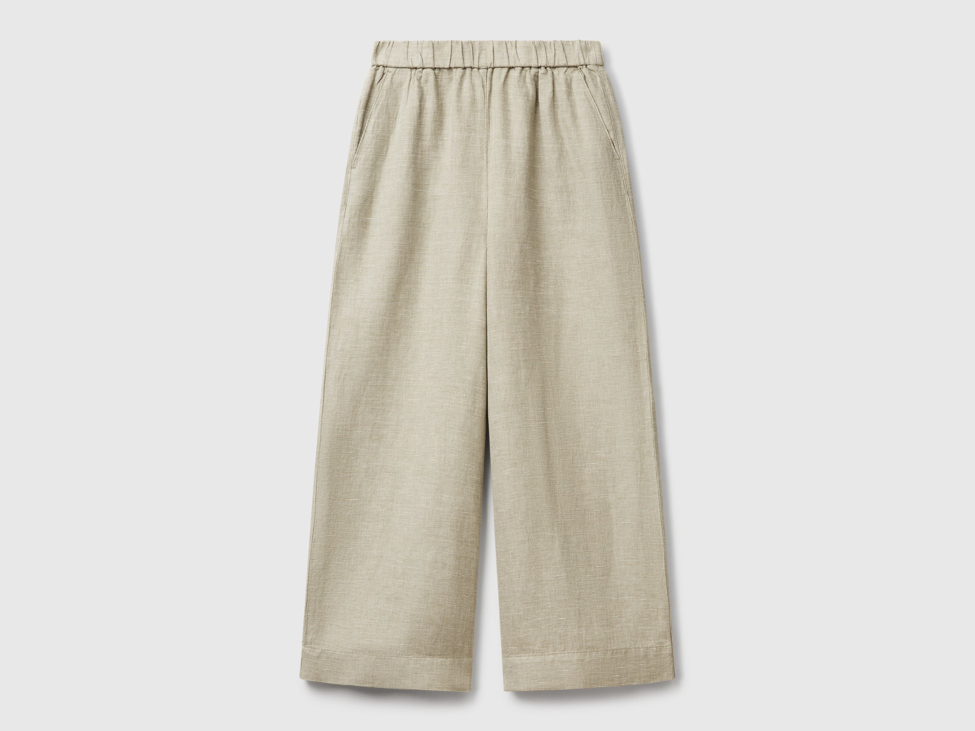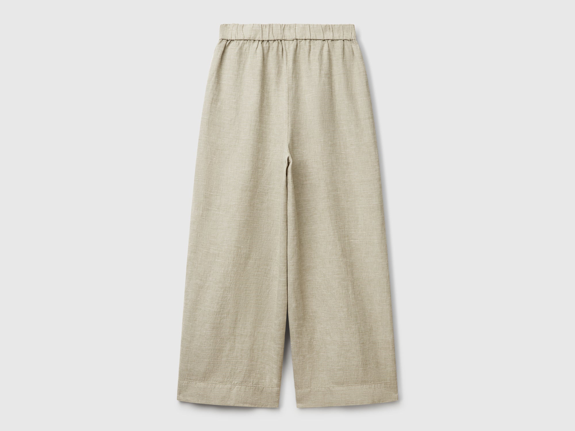 Long trousers in a lightweight cotton and linen blend with a yarn-dyed check. Wide legs with an elasticated waist and front pockets. For modern and bold outfits.
