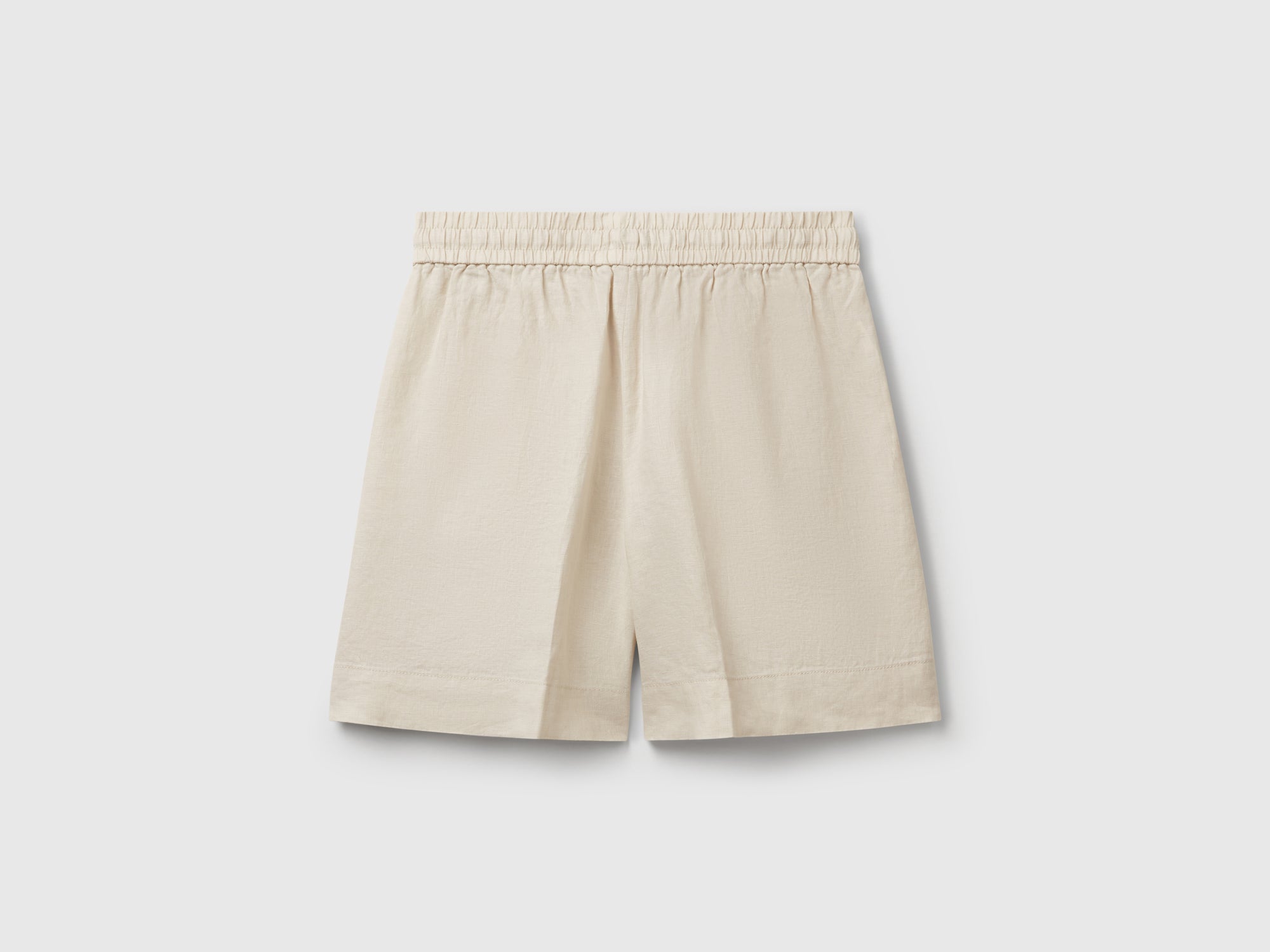 Pantaloni corti in tessuto leggero di puro lino. Vita elasticizzata con coulisse e tasche diagonali sul davanti. Articolo realizzato con materiale in 100% lino coltivato in Europa.