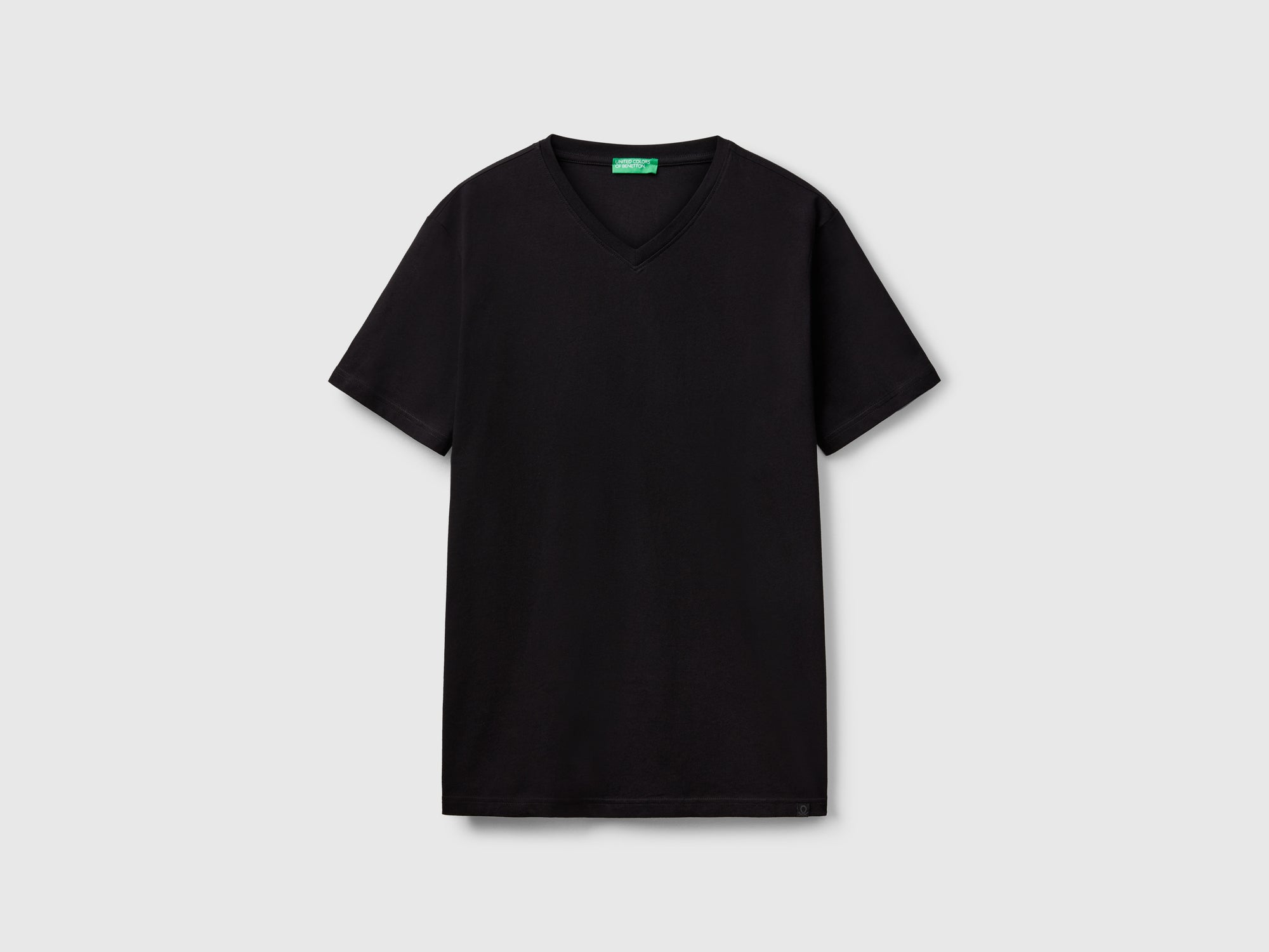 Maglietta a manica corta con scollo a V. Realizzata in 100% cotone a fibra lunga, un materiale prestigioso caratterizzato da elevata elasticità, resistenza e morbidezza.