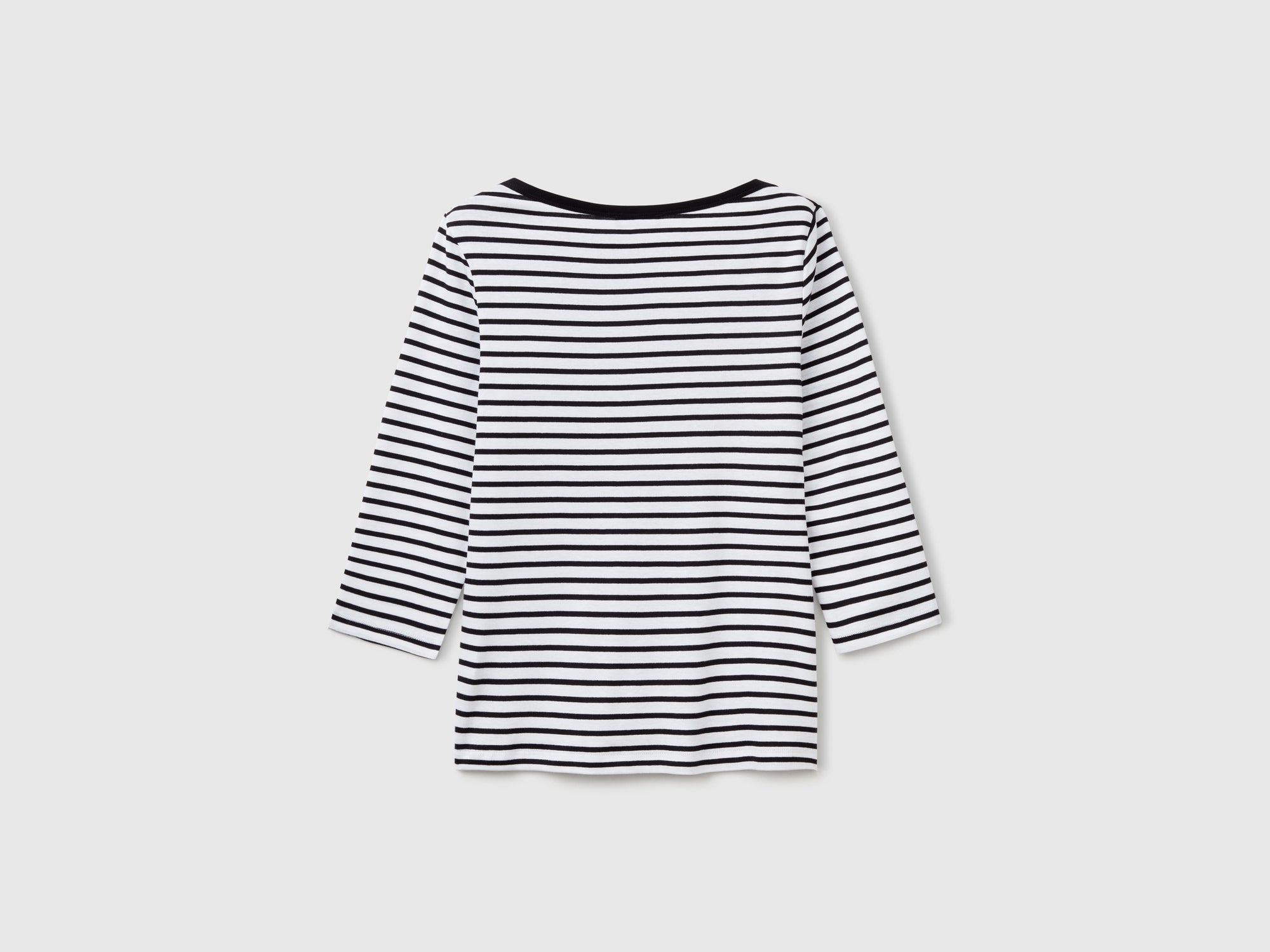 T-shirt manica 3/4 a righe in puro cotone da donna bianco | Benetton Outlet T-shirt manica 3/4 a righe in puro cotone da donna bianco 2 | Benetton Outlet