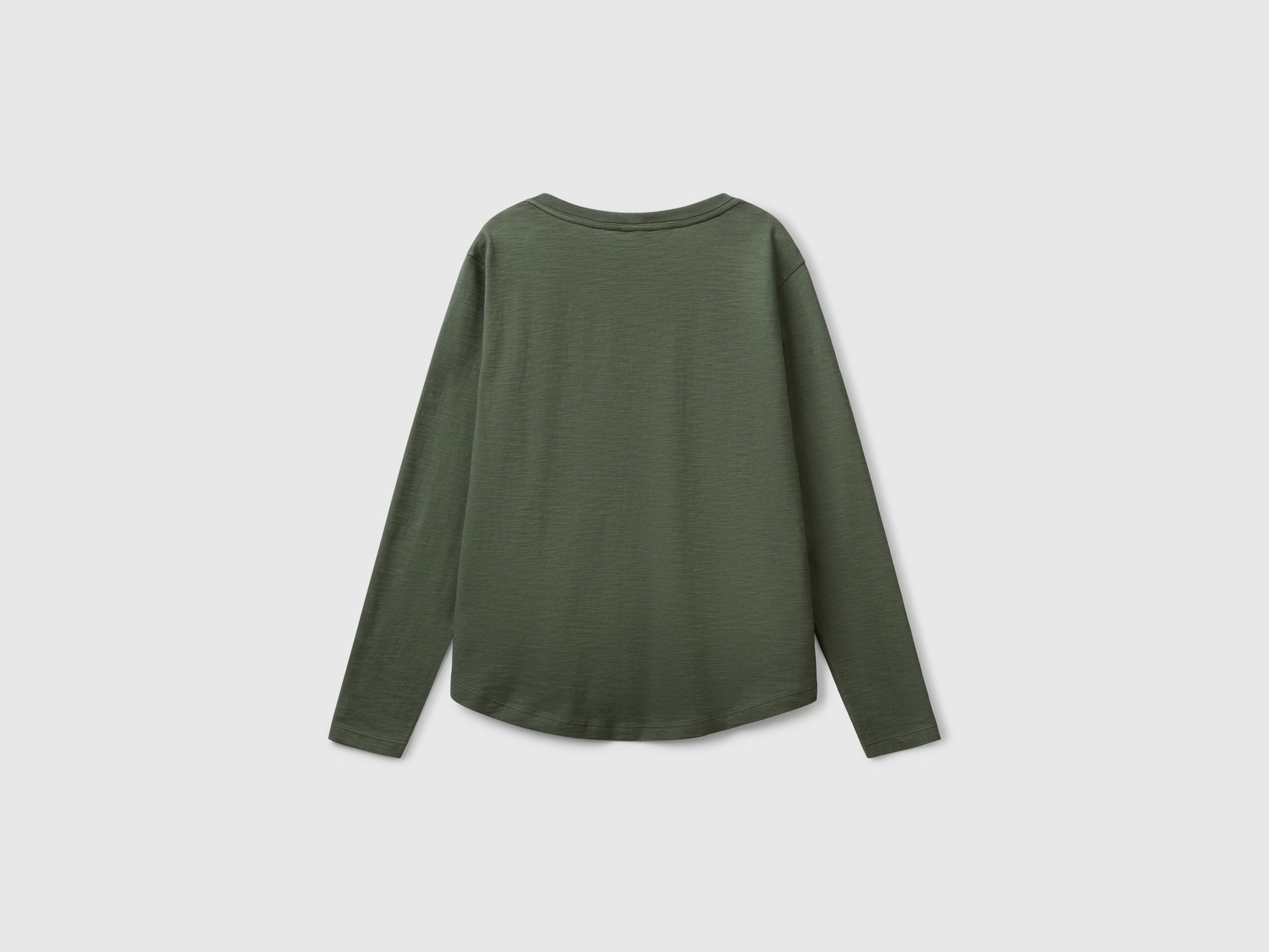 Maglietta a manica lunga in puro cotone fiammato. Vestibilità rilassata e ampio scollo rotondo. Fondo stondato più lungo sul retro. Confortevole e versatile.