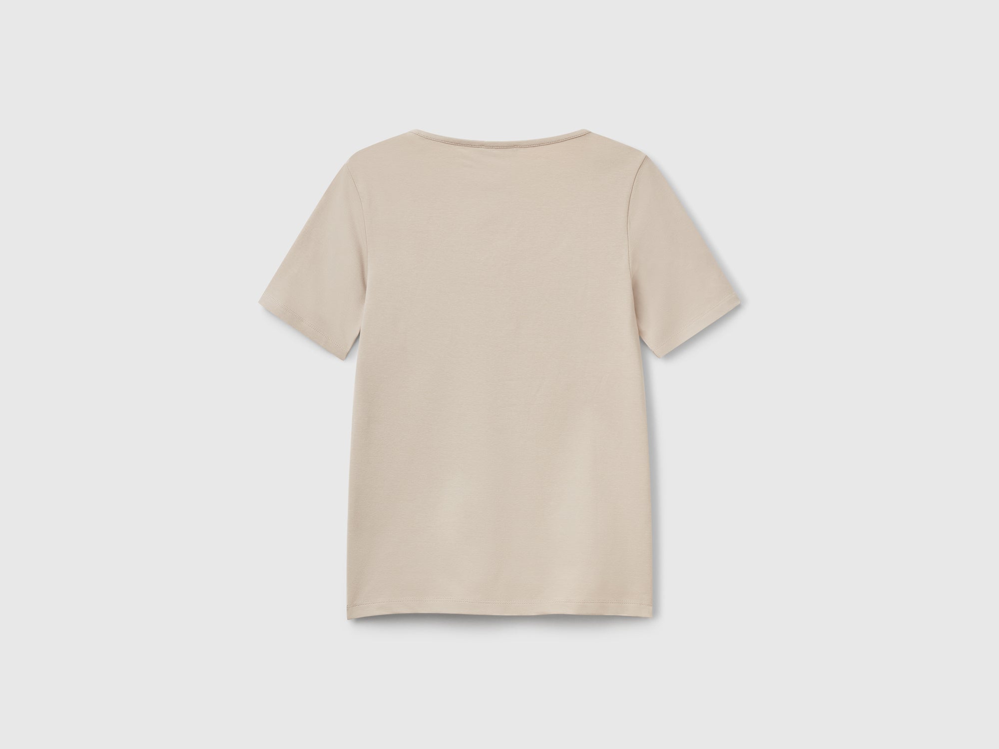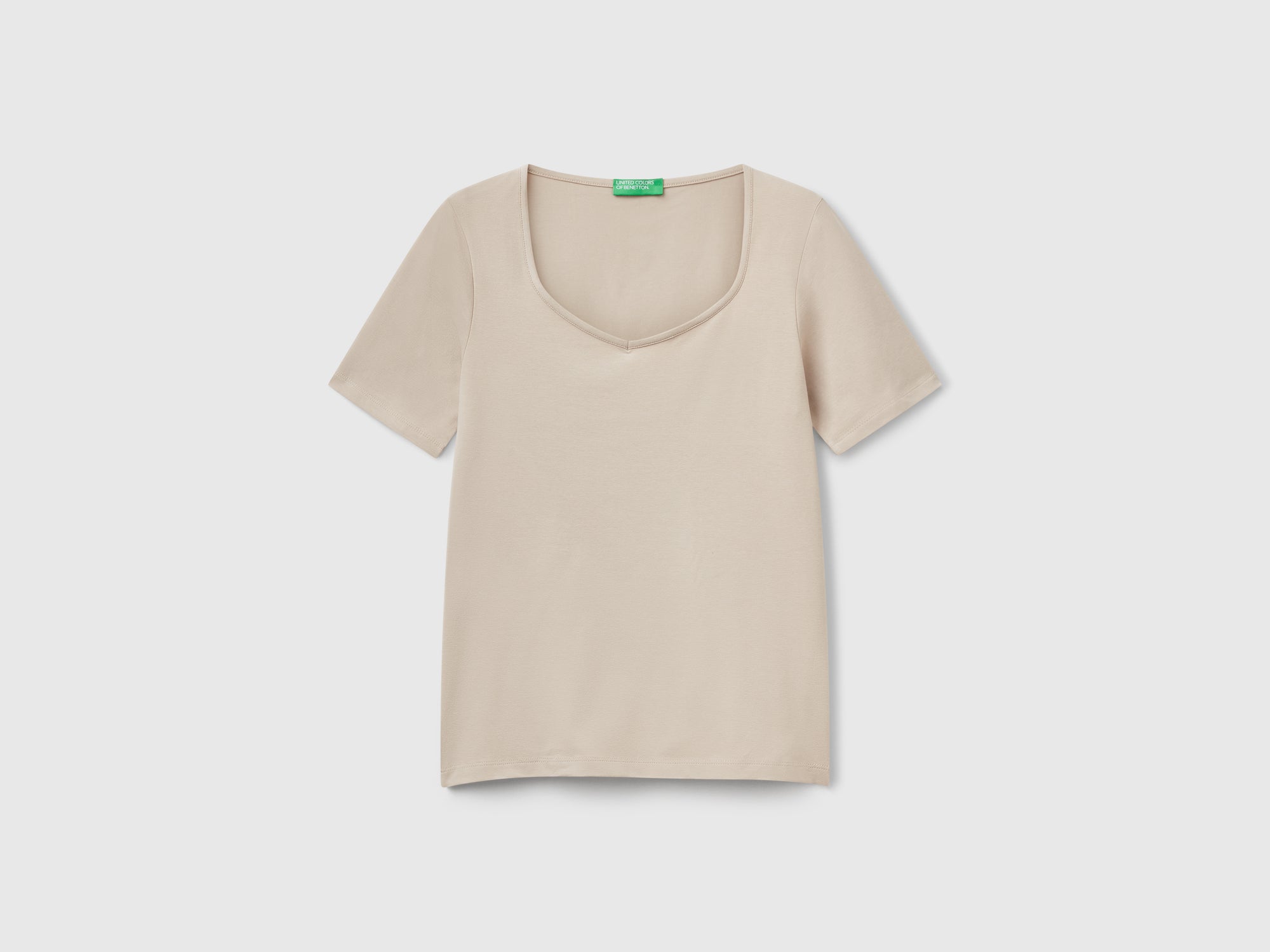 Maglietta a manica corta in morbido cotone elasticizzato. Vestibilità aderente e scollo ampio. Un capo basico ma versatile, per abbinamenti quotidiani.