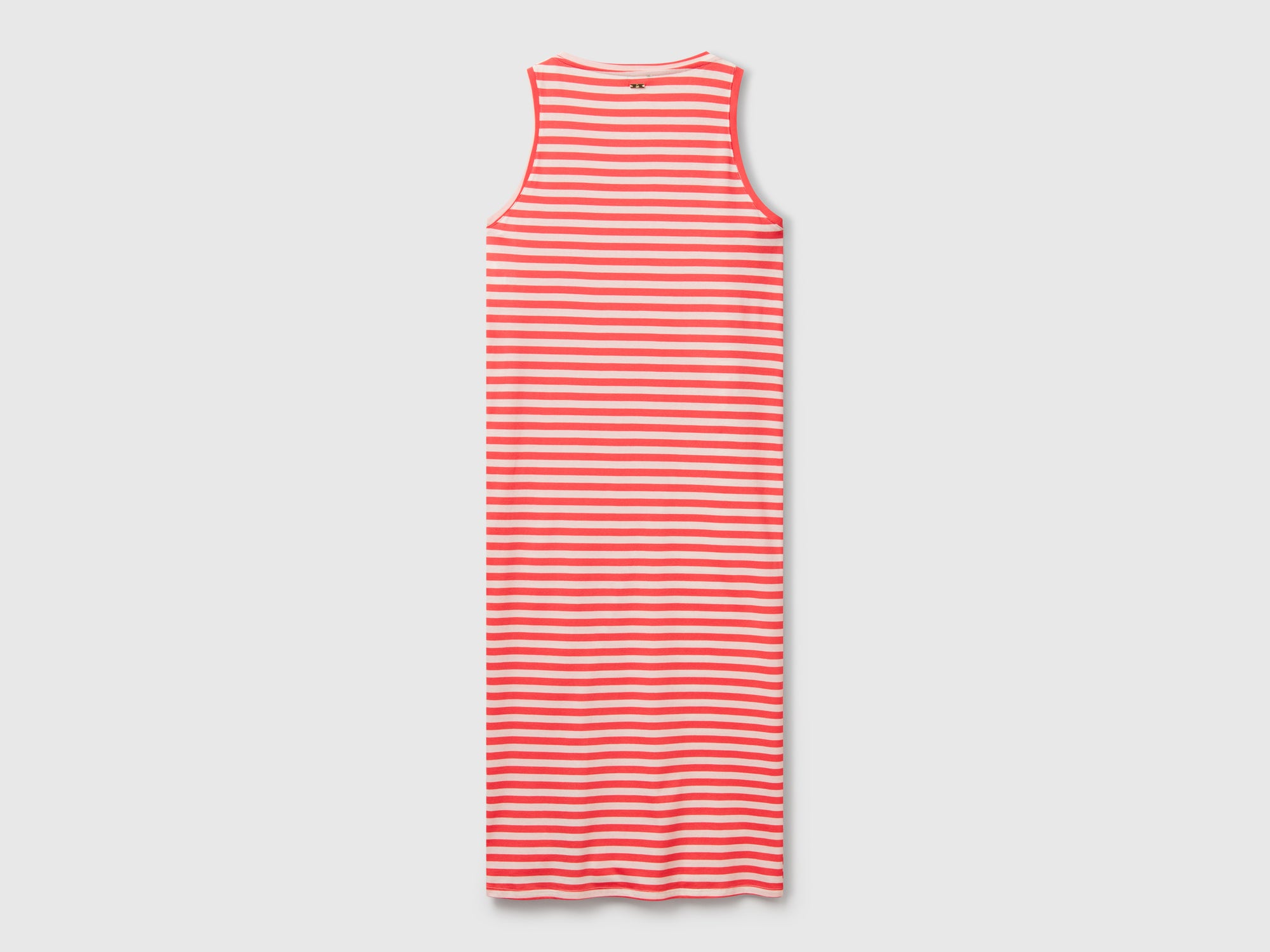 - Main features: Midi dress in soft pure cotton. Featuring a yarn-dyed striped pattern, a round neckline, and a wide front slit. 100% cotton jersey; sleeveless.