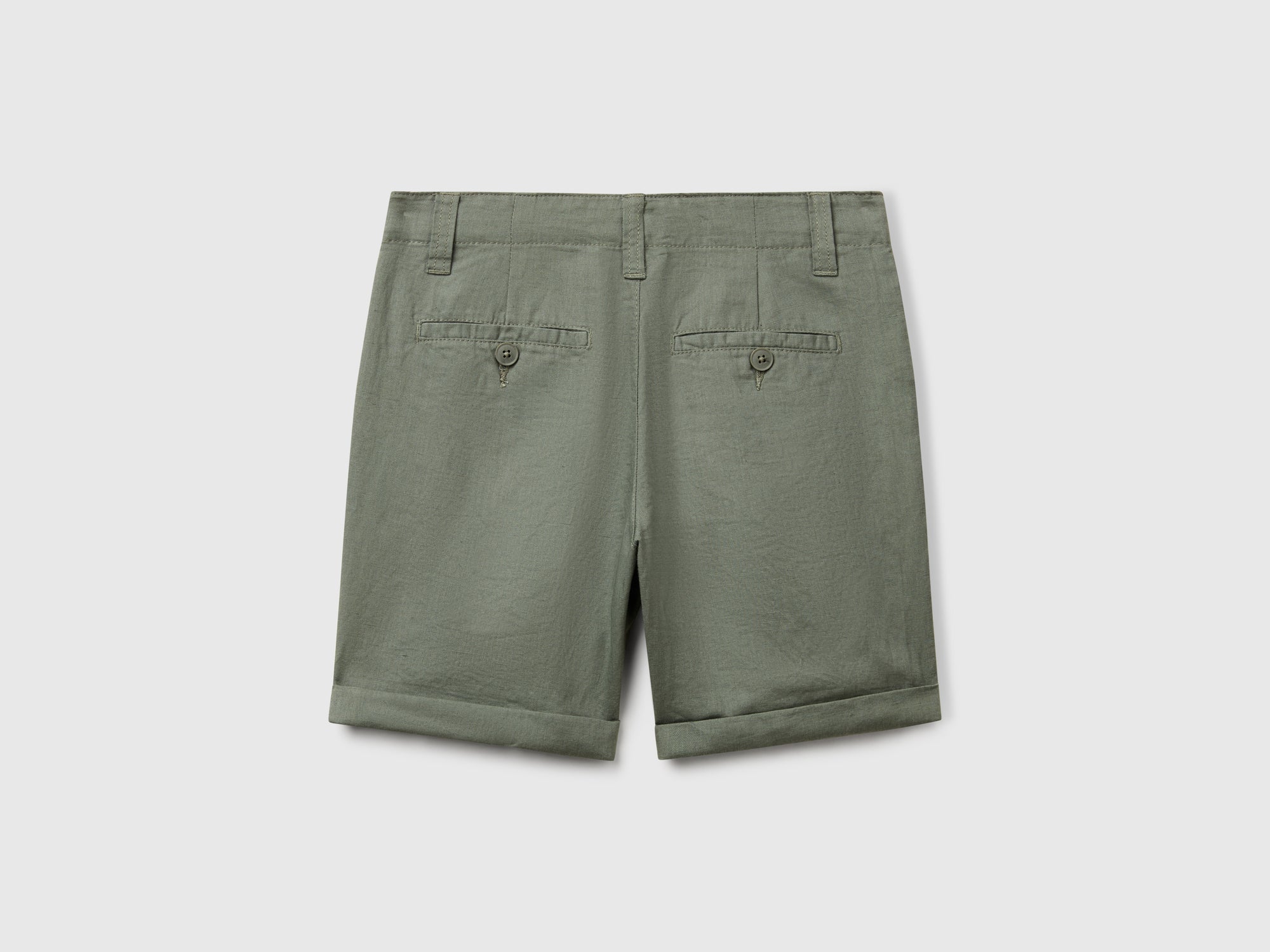 Shorts modello chino in morbido tessuto di misto lino e cotone. Vita regolare con apertura a zip e bottone. Tasche frontali e taschini a filetto con bottone sul retro. Un classico del guardaroba maschile, anche per i più piccoli. Articolo realizzato con materiale contenente almeno il 50% di lino coltivato in Europa.