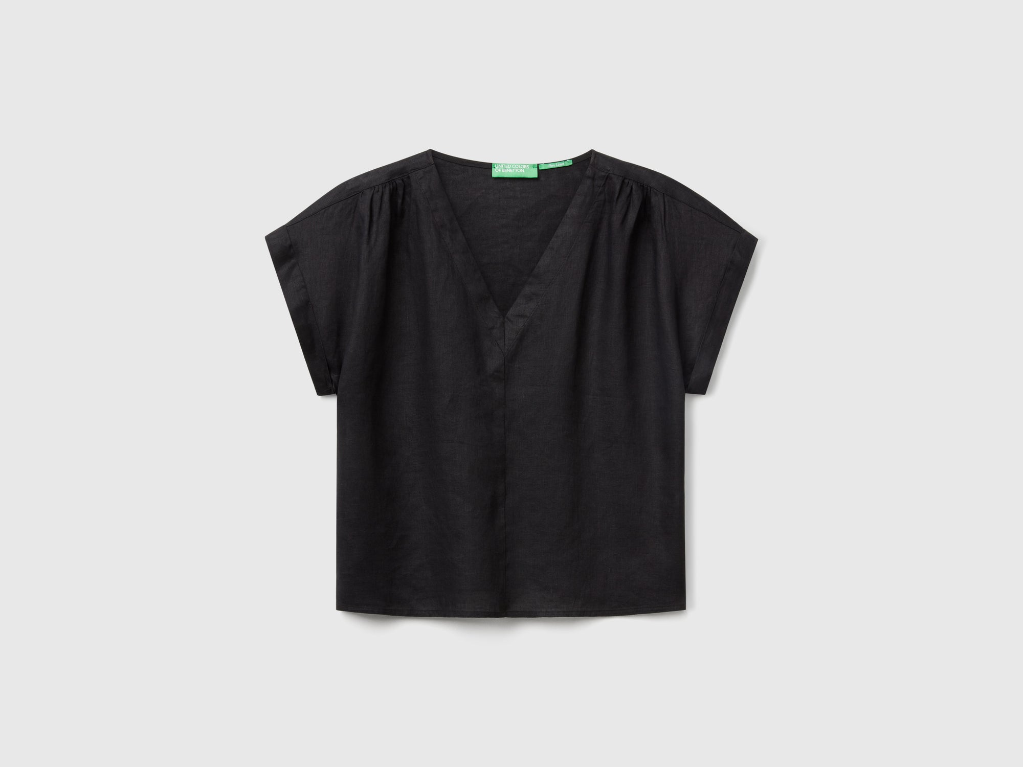 Blusa in puro lino da donna nero | Benetton Outlet Blusa in puro lino da donna nero 2 | Benetton Outlet