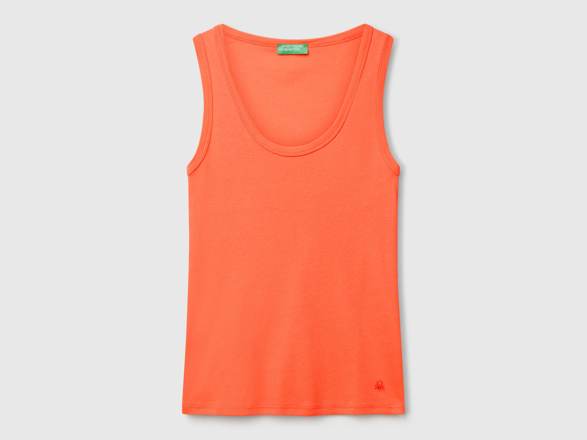 Top slim fit con spallina sottile, ampio scollo rotondo e logo ricamato sul fondo davanti. Realizzato in prestigioso cotone a fibra lunga per offrire ancora più elasticità, resistenza e morbidezza.