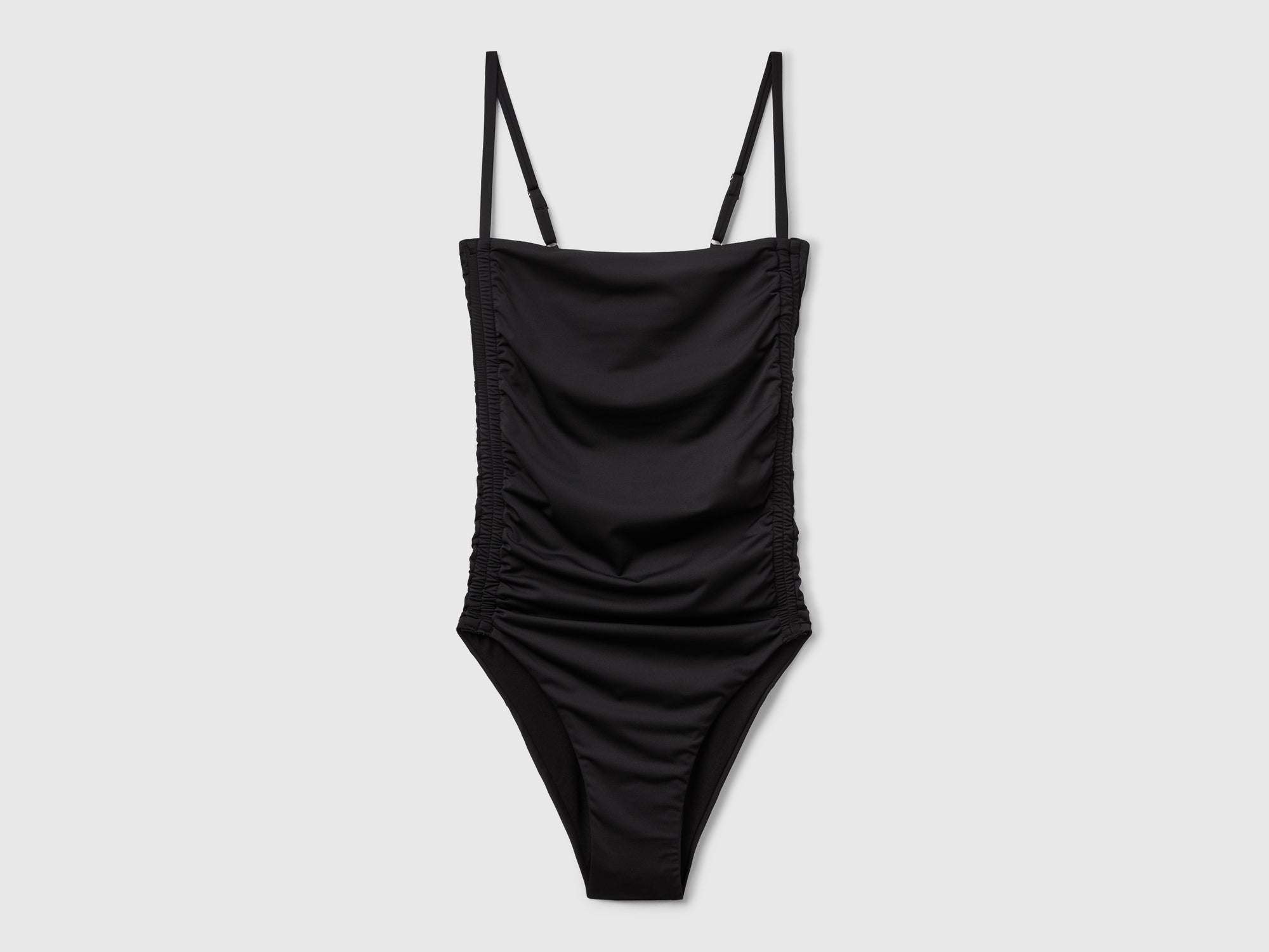 Costume intero coppa B elasticizzato, con scollo dritto e spalline regolabili. Elastico interno scorrevole sui lati, che crea un drappeggio sulla pancia. Questo capo contiene ECONYL® una fibra di nylon rigenerata al 100%, proveniente da reti da pesca usate e altri scarti di nylon.