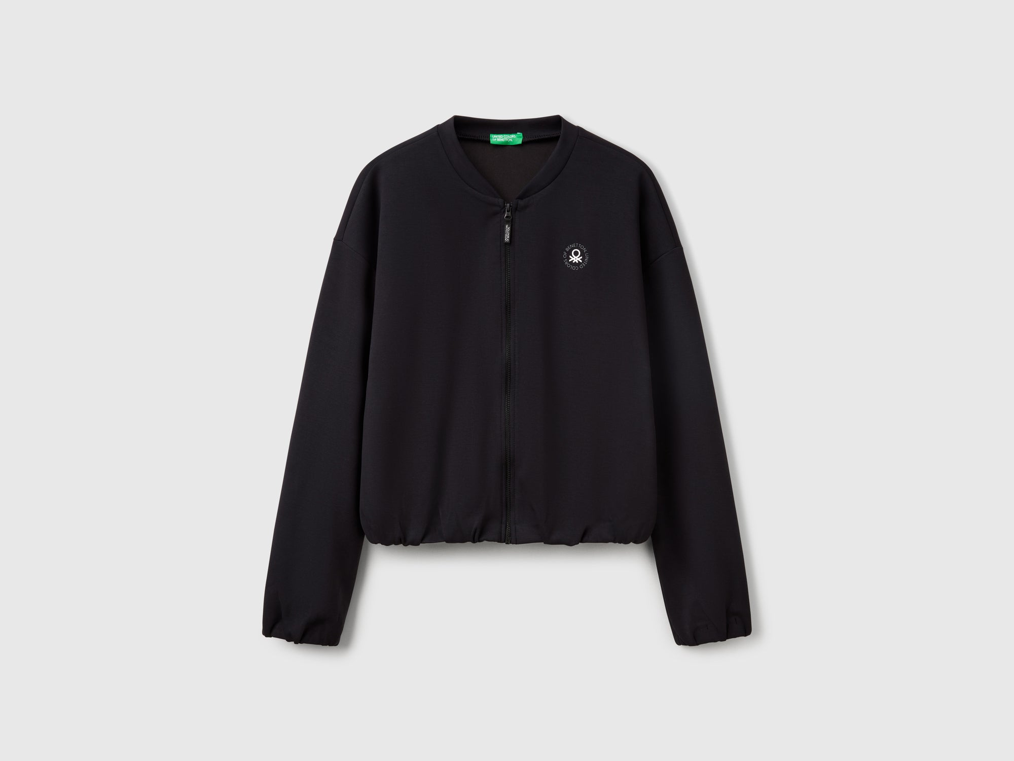 Felpa sportiva con stampa logo da donna nero | Benetton Outlet