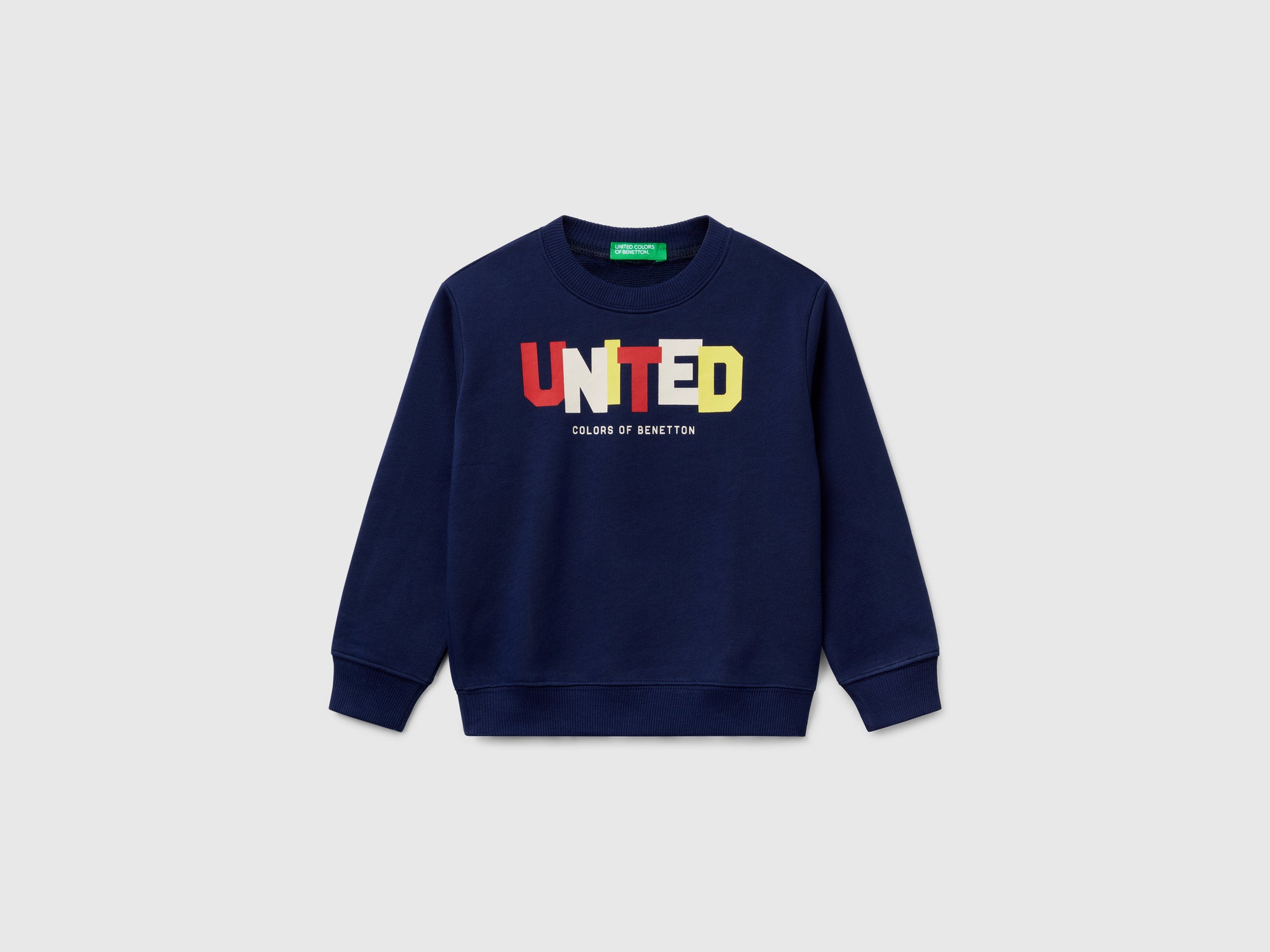 Felpa 100% cotone con stampa da bambino blu scuro | Benetton Outlet
