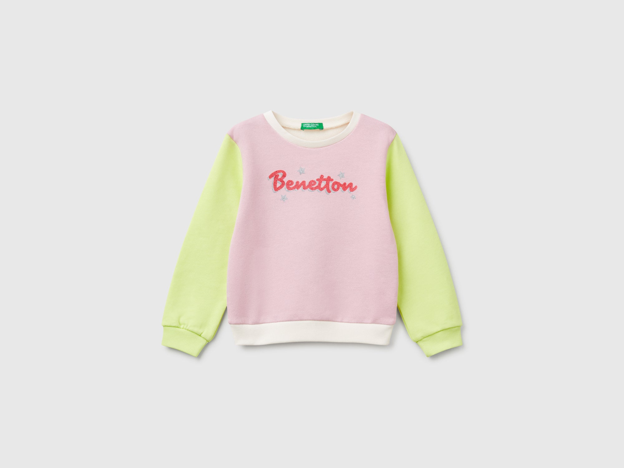 Felpa girocollo a manica lunga in morbido tessuto di puro cotone biologico. Vestibilità regolare e stampa logo glitterata sul davanti. Scintillante e delicata sulla pelle. Articolo realizzato con tessuto contenente almeno il 95% di cotone biologico.