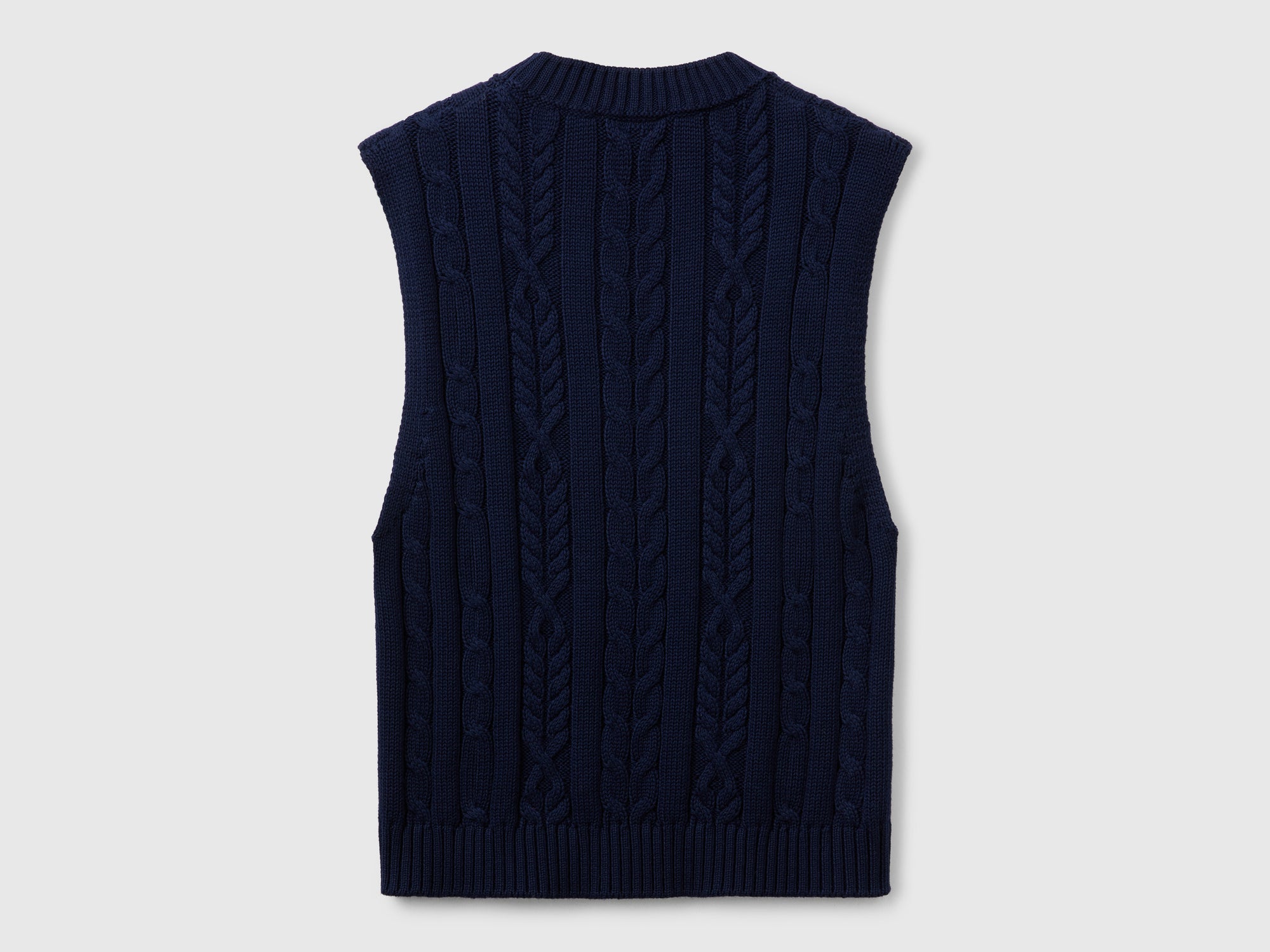- Main features: Crew-neck vest in pure cotton with a short fit. Featuring a cable and ribbed knit throughout. Soft and feminine, it's perfect as an extra layer. 100% cotton; Ribbed edges.