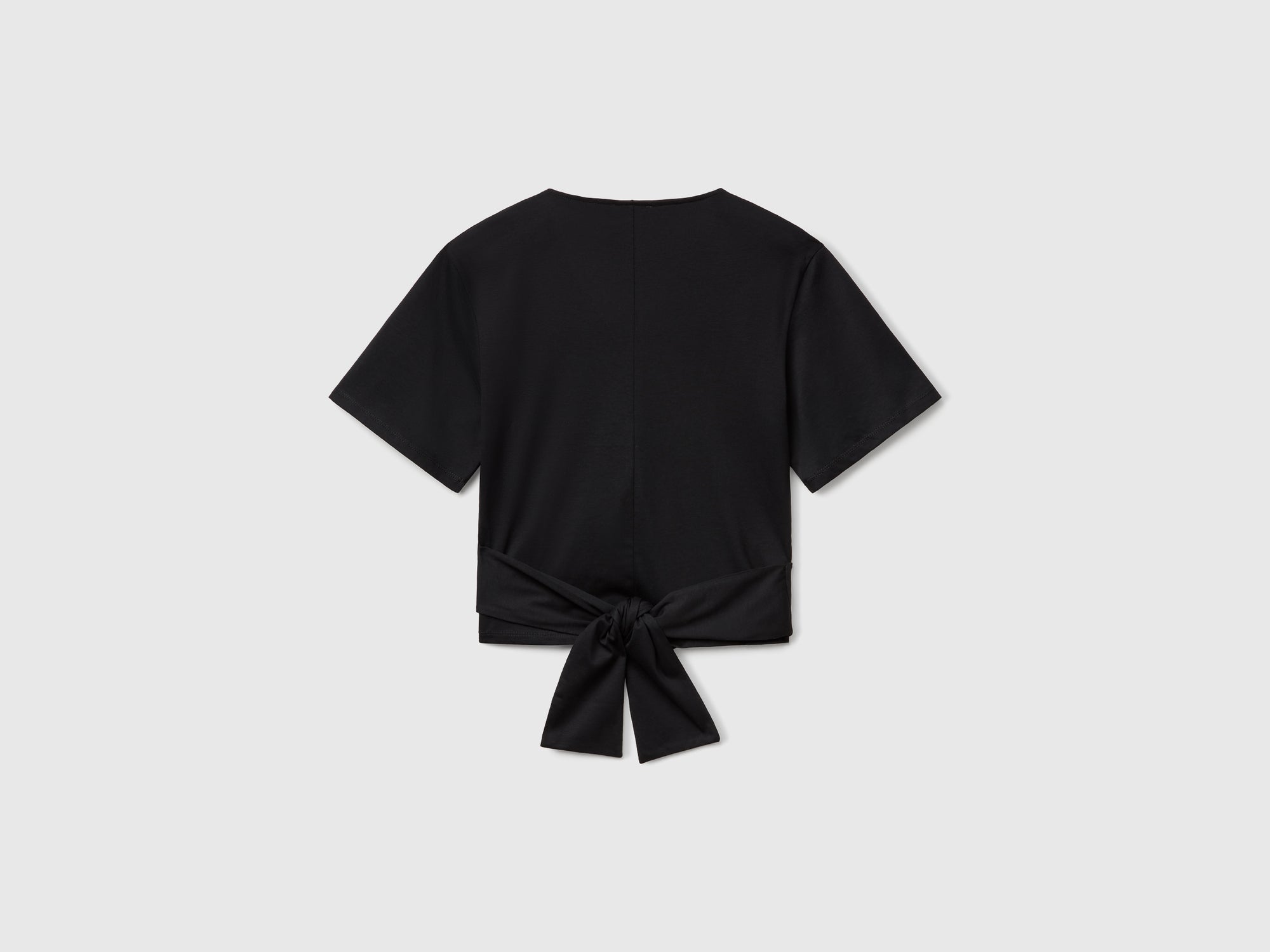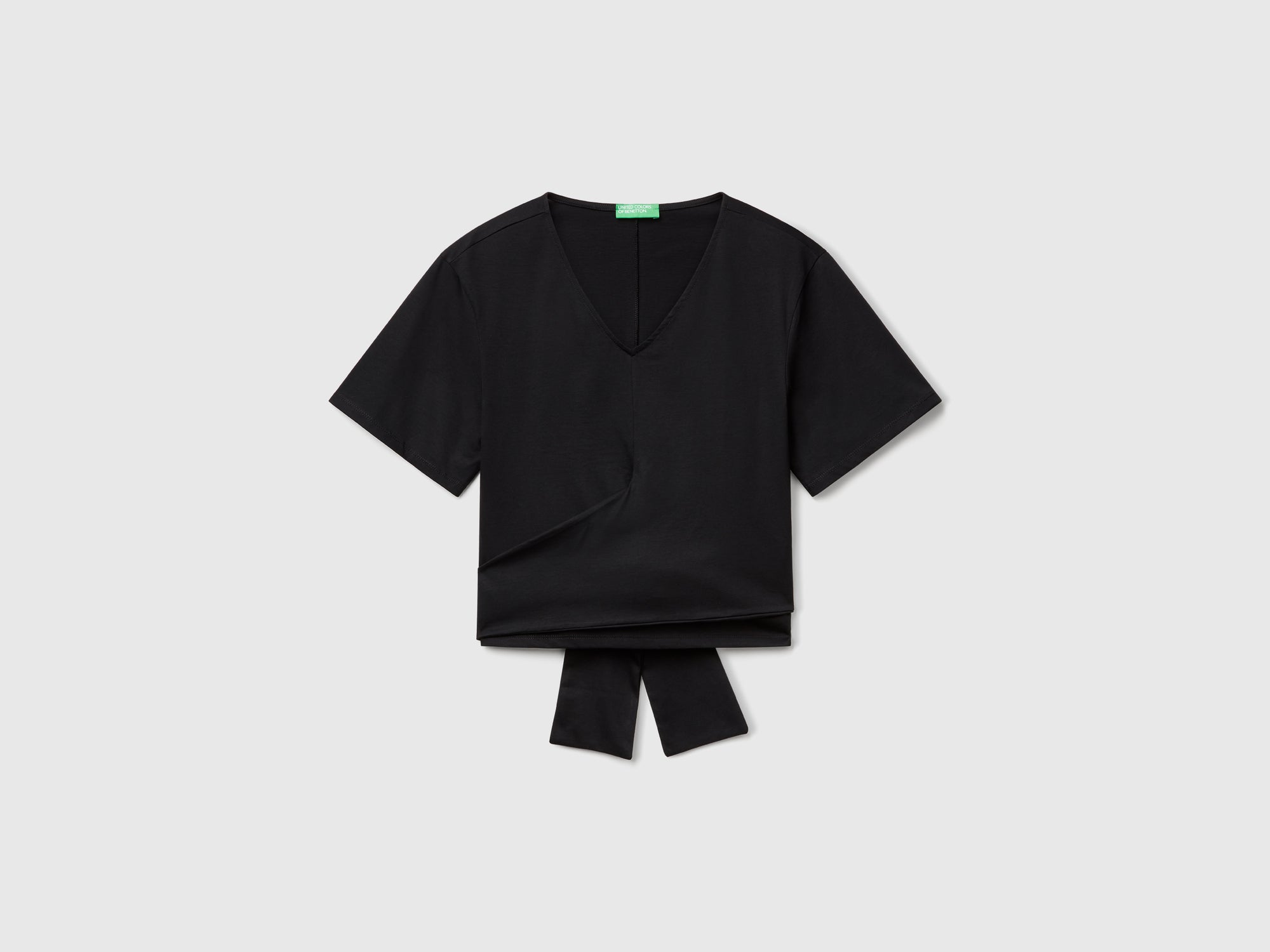 T-shirt a manica corta con scollo a V in morbido puro cotone dall'aspetto lucido. Dettaglio di incrocio sul davanti e laccio annodato sul retro. Per outfit quotidiani, con un tocco di personalità.