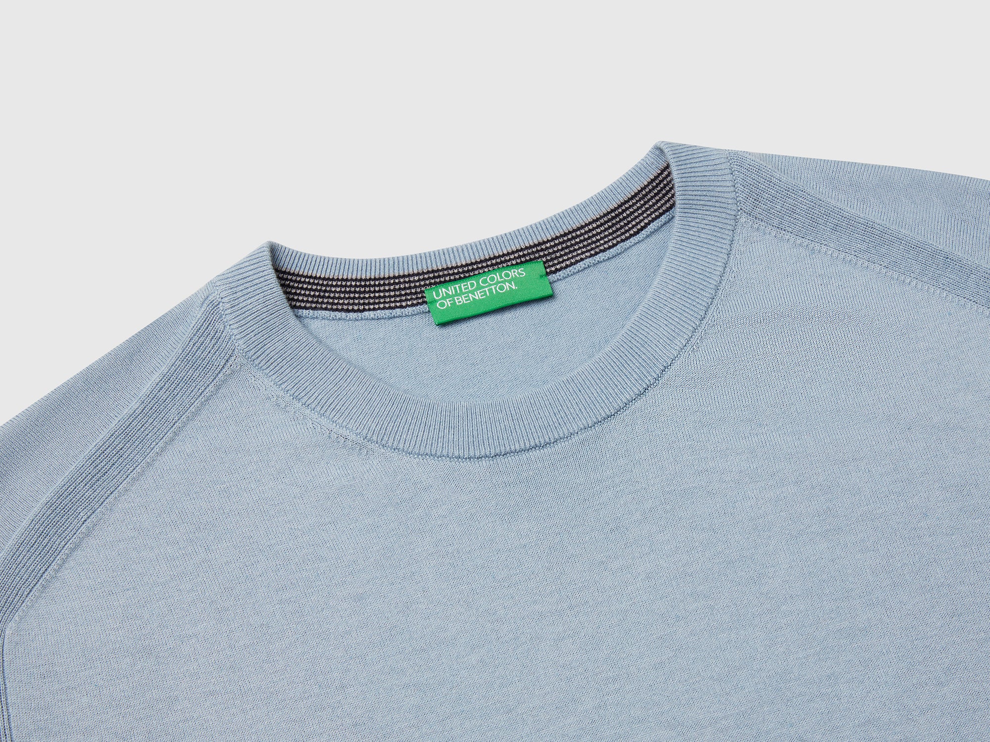 Maglia girocollo in morbido tessuto di misto cotone, viscosa e seta. Manica lunga e placchetta logo in metallo applicata sul fondo a sinistra. Basico e versatile, da indossare nel tempo libero con una t-shirt oppure in ufficio, sovrapposto ad una camicia.