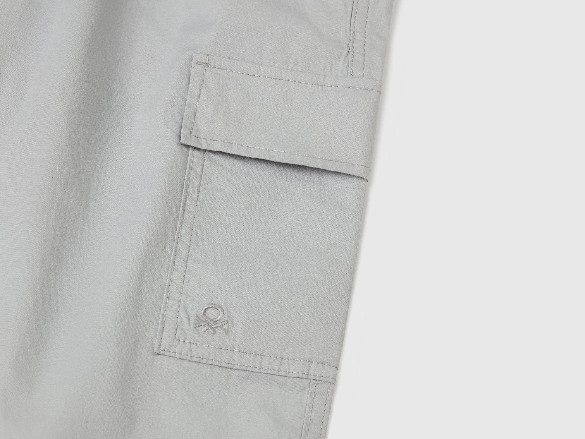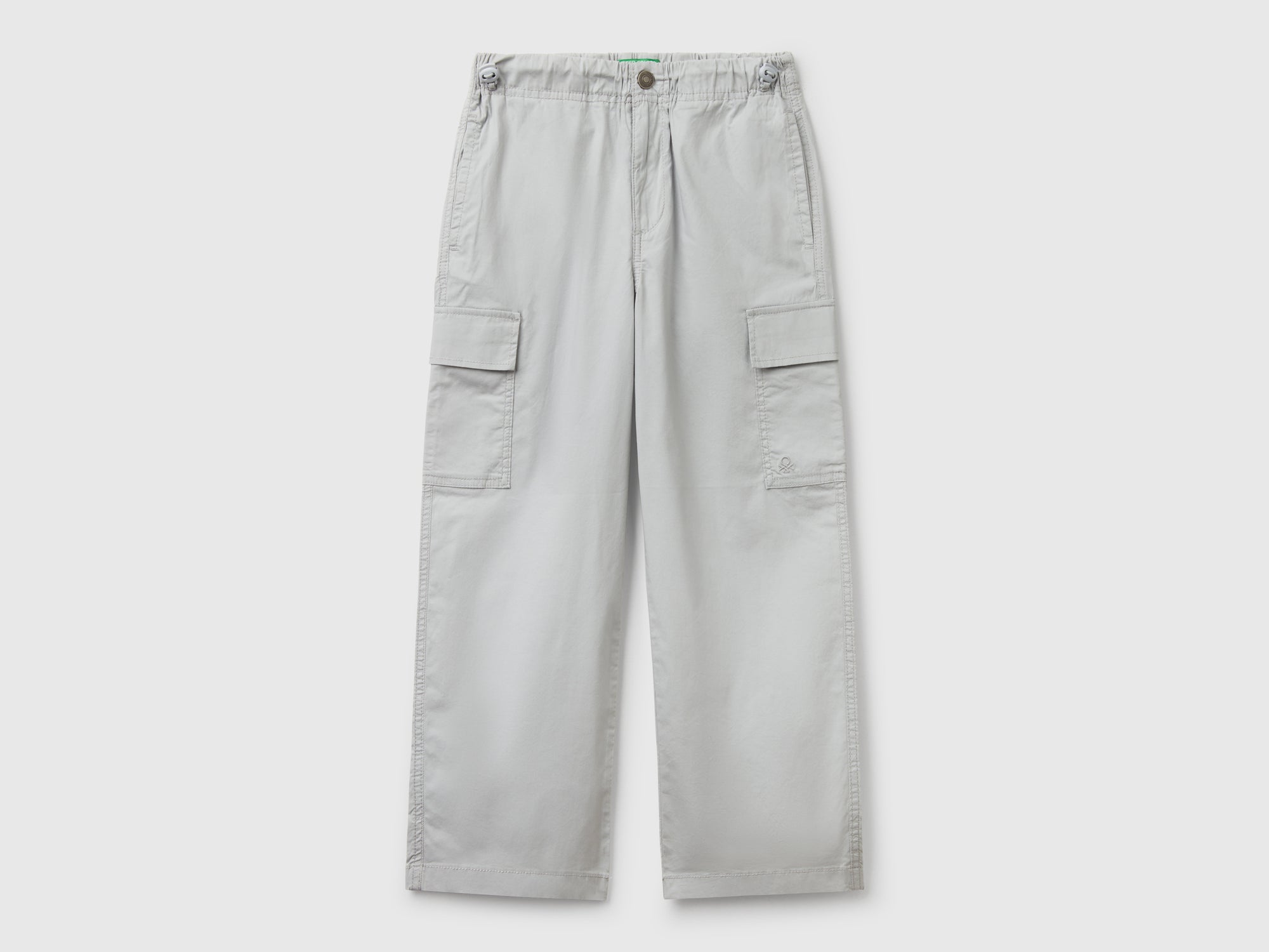 Pantaloni lunghi modello parachute in tela leggera di cotone elasticizzato. Vita con coulisse elastica e fermacordini laterali, apertura a zip e bottone. Tasche inserite davanti, taschino sul retro e tasconi applicati lateralmente. Per un look moderno e deciso.