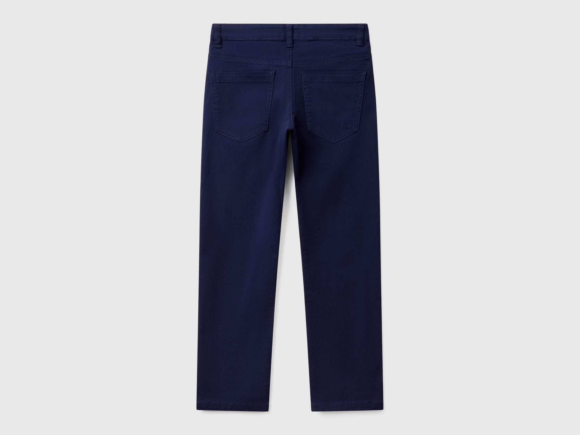 Pantaloni lunghi cinque tasche in cotone elasticizzato. Vestibilità slim e vita regolare. Apertura con zip e bottone, piccolo logo ricamato sul taschino posteriore destro. Elastico interno regolabile in vita. Incredibilmente versatili, da indossare tutti i giorni.