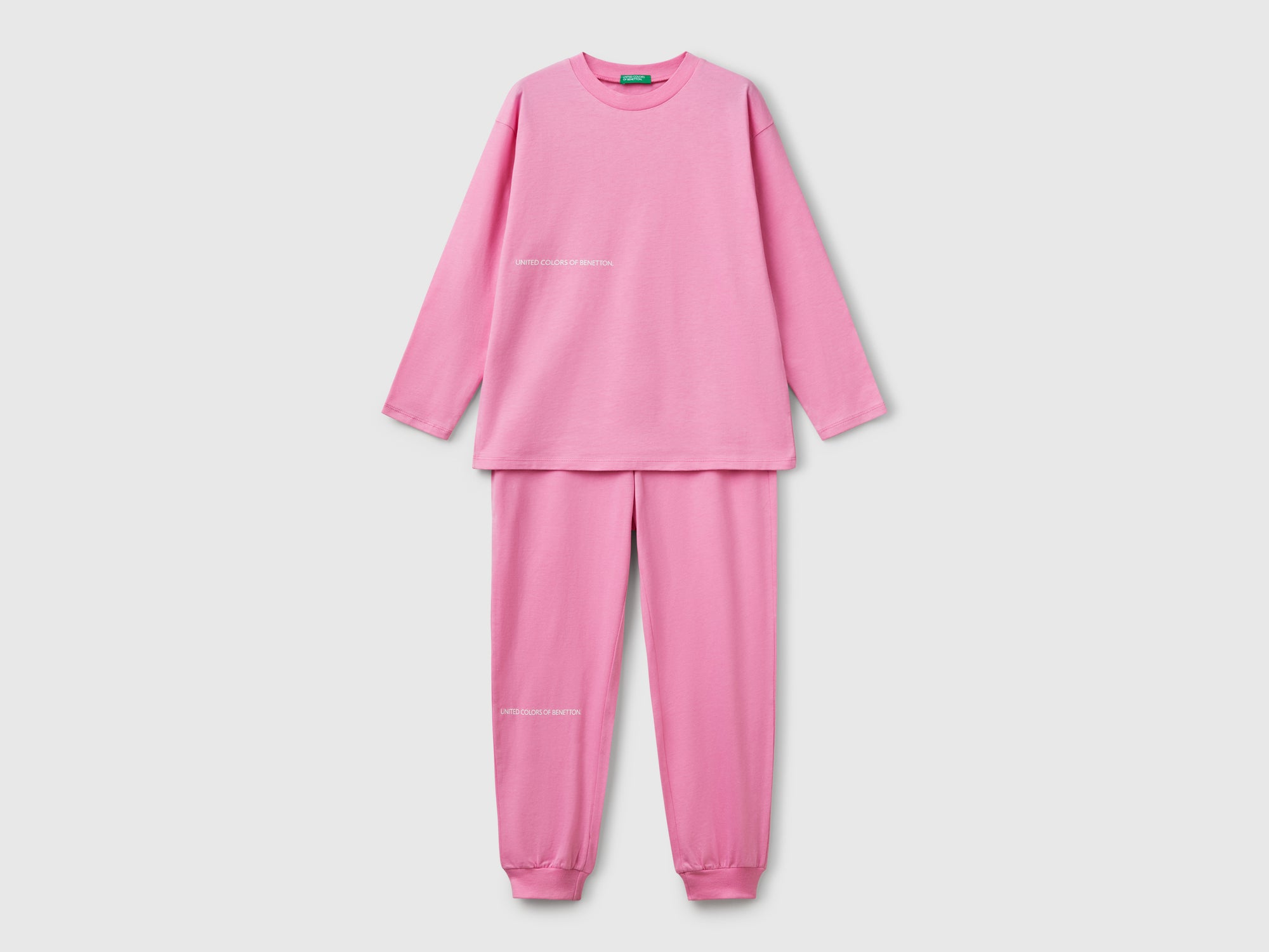 Pigiama lungo in morbido tessuto di puro cotone. Maglia girocollo a manica lunga con logo ricamato sul davanti. Pantaloni lunghi con elastico jacquard logato in vita.