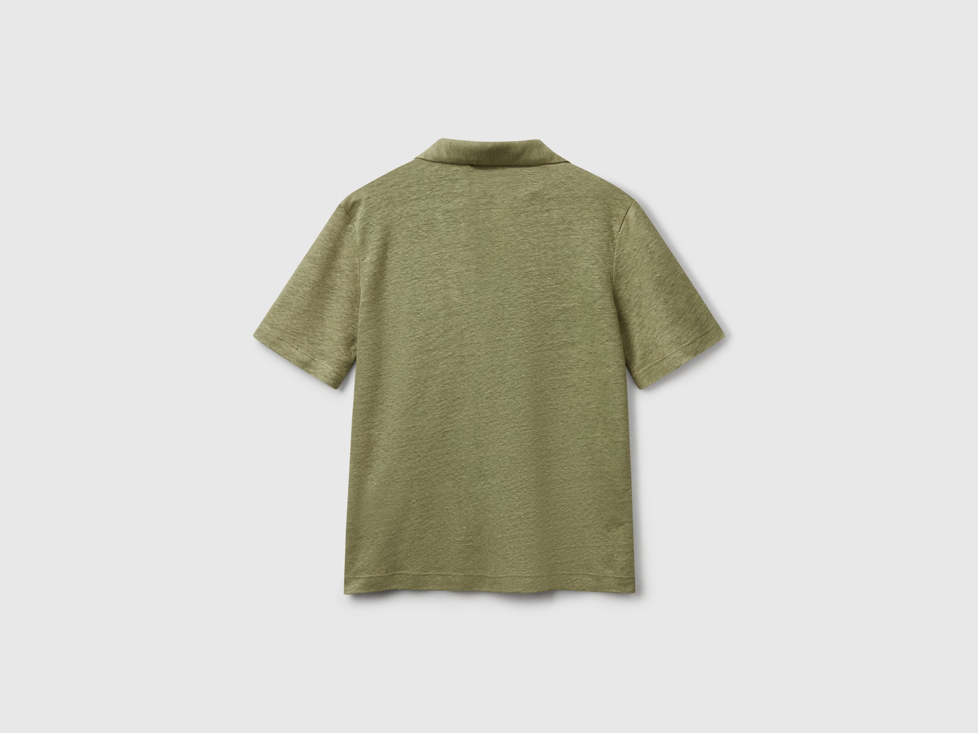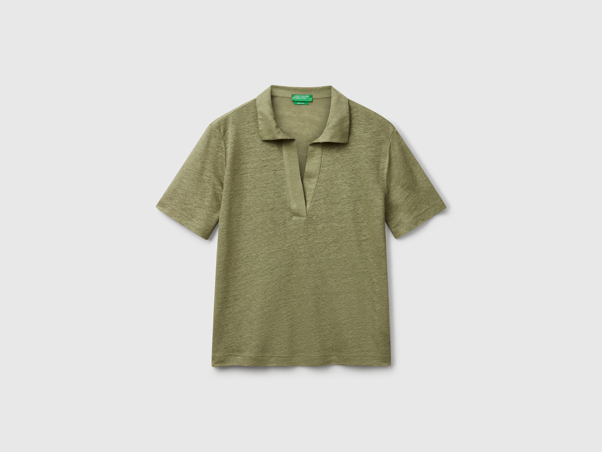 Polo in morbido tessuto di puro lino. Colletto classico, scollo a V e manica al gomito. Vestibilità dritta, per un capo casual perfetto con un paio di jeans.