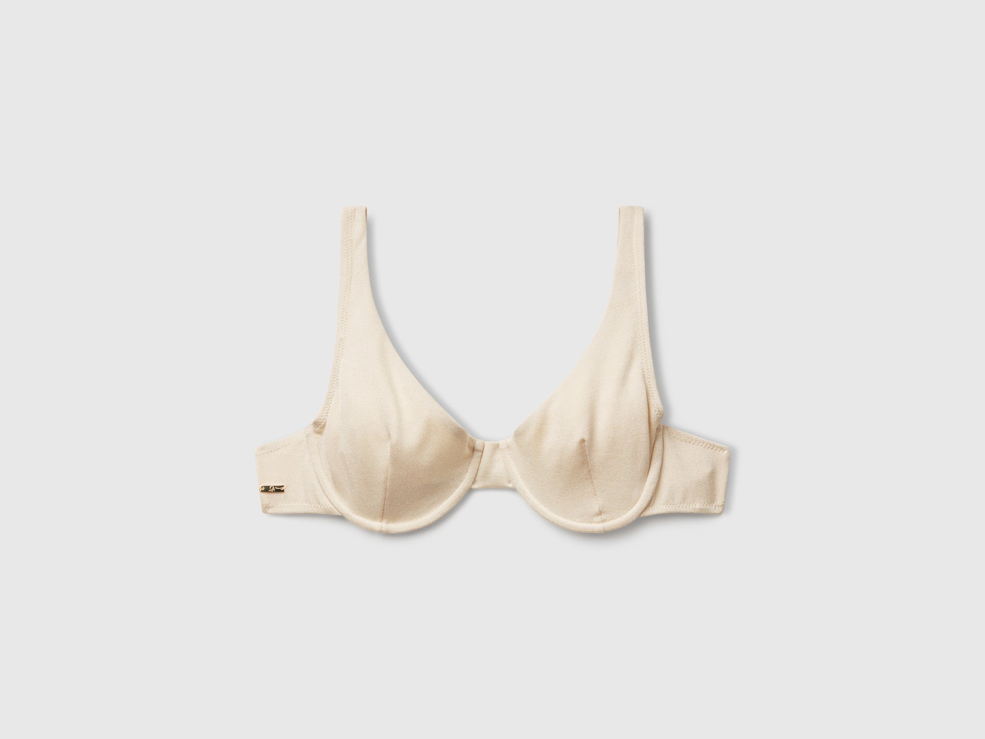Reggiseno mare coppa C con ferretto in tessuto mosso elasticizzato con inserti in filo di lurex. Spalline sottili regolabili e lacci da annodare sulla schiena.