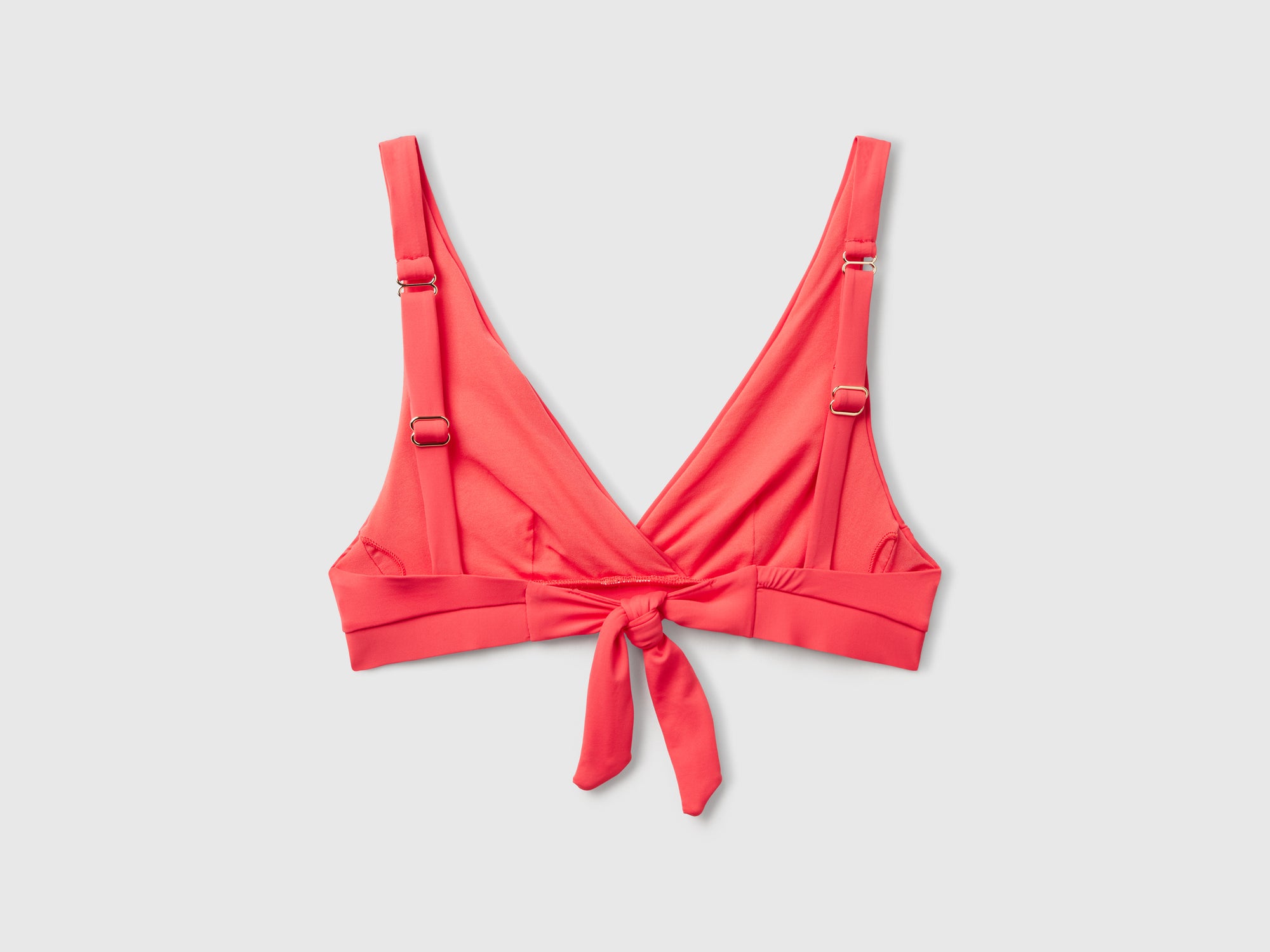 Reggiseno costume a triangolo con spalline sottili regolabili e lacci da annodare sulla schiena. Questo capo contiene ECONYL® una fibra di nylon rigenerata al 100%, proveniente da reti da pesca usate e altri scarti di nylon.