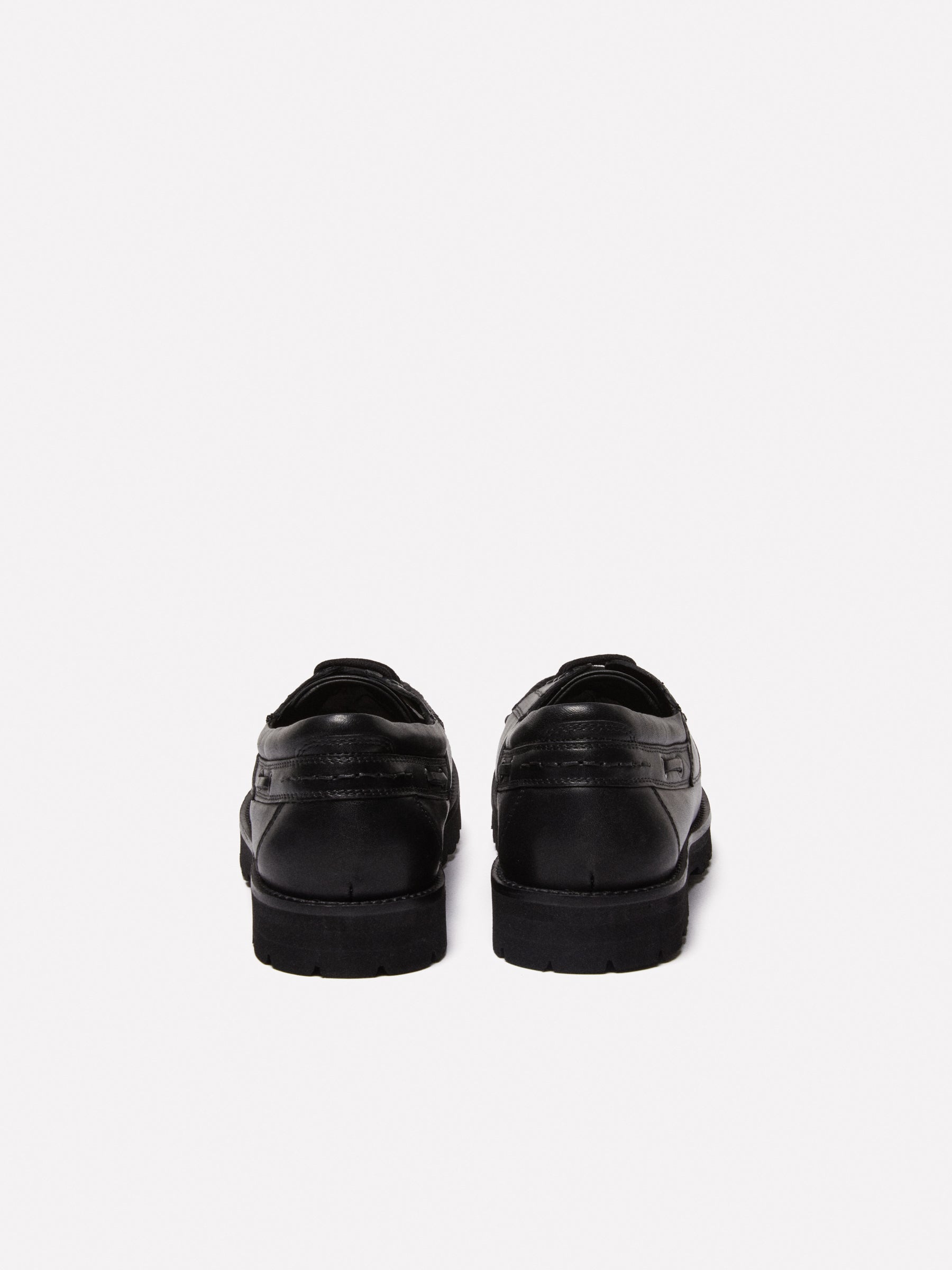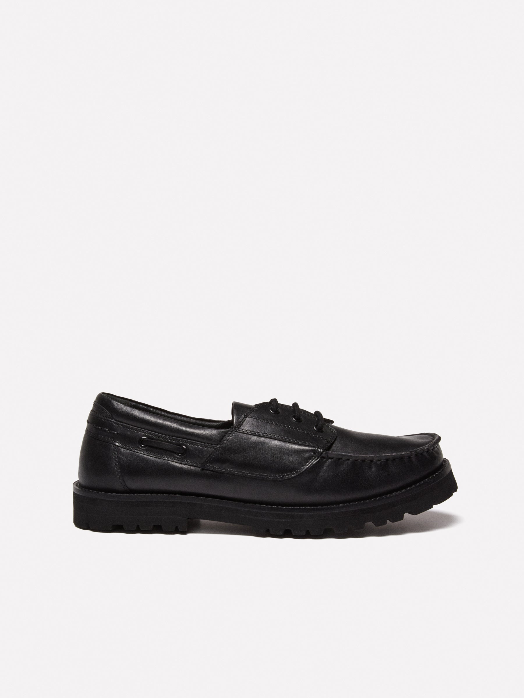 Boat shoes in 100% leather. Tapered toe with gathering detail on the upper, tonal waxed cotton laces, and lug sole.