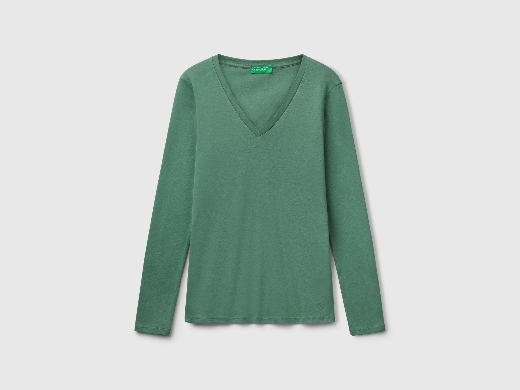 T-shirt a manica lunga con scollo a V da donna verde | Benetton Outlet T-shirt a manica lunga con scollo a V da donna verde 2 | Benetton Outlet