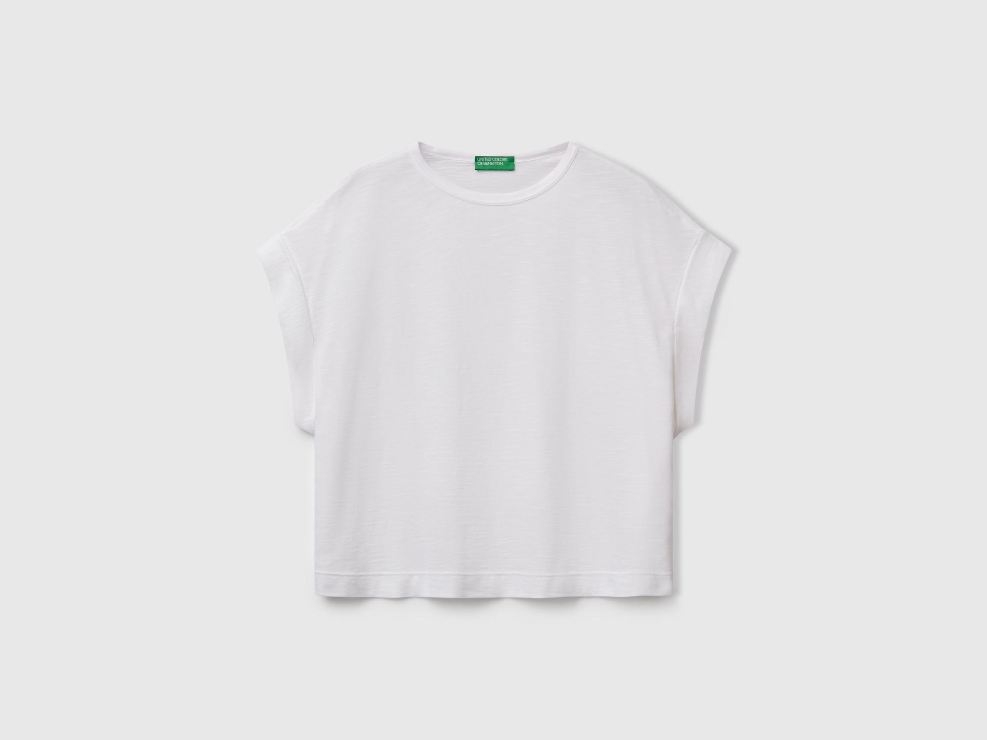 Maglietta girocollo in tessuto leggero di misto cotone e Modal. Vestibilità boxy e manica corta con risvolto fissato sul fondo. Un capo versatile e confortevole, perfetto anche come sotto giacca.