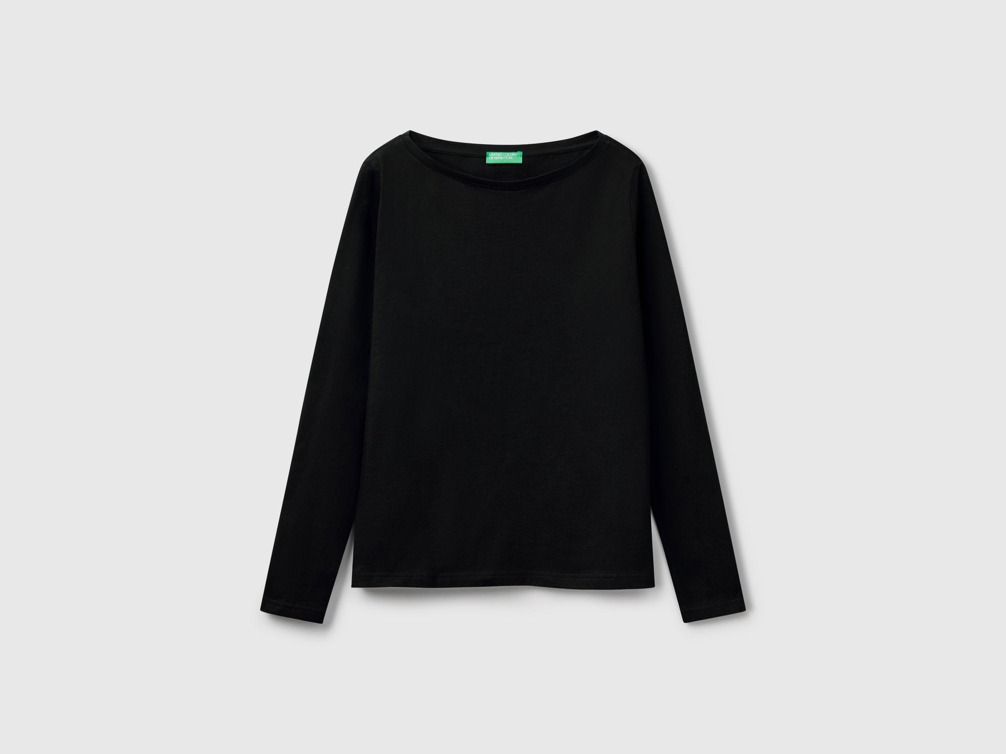 Maglietta a manica lunga in puro cotone. Scollo a barchetta e vestibilità regolare. Un capo pulito e versatile, ideale per il tempo libero.