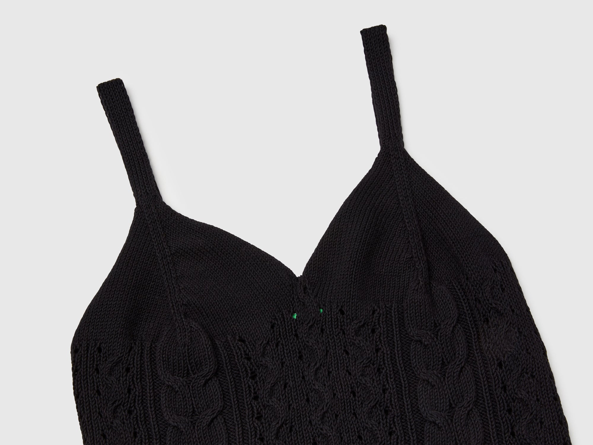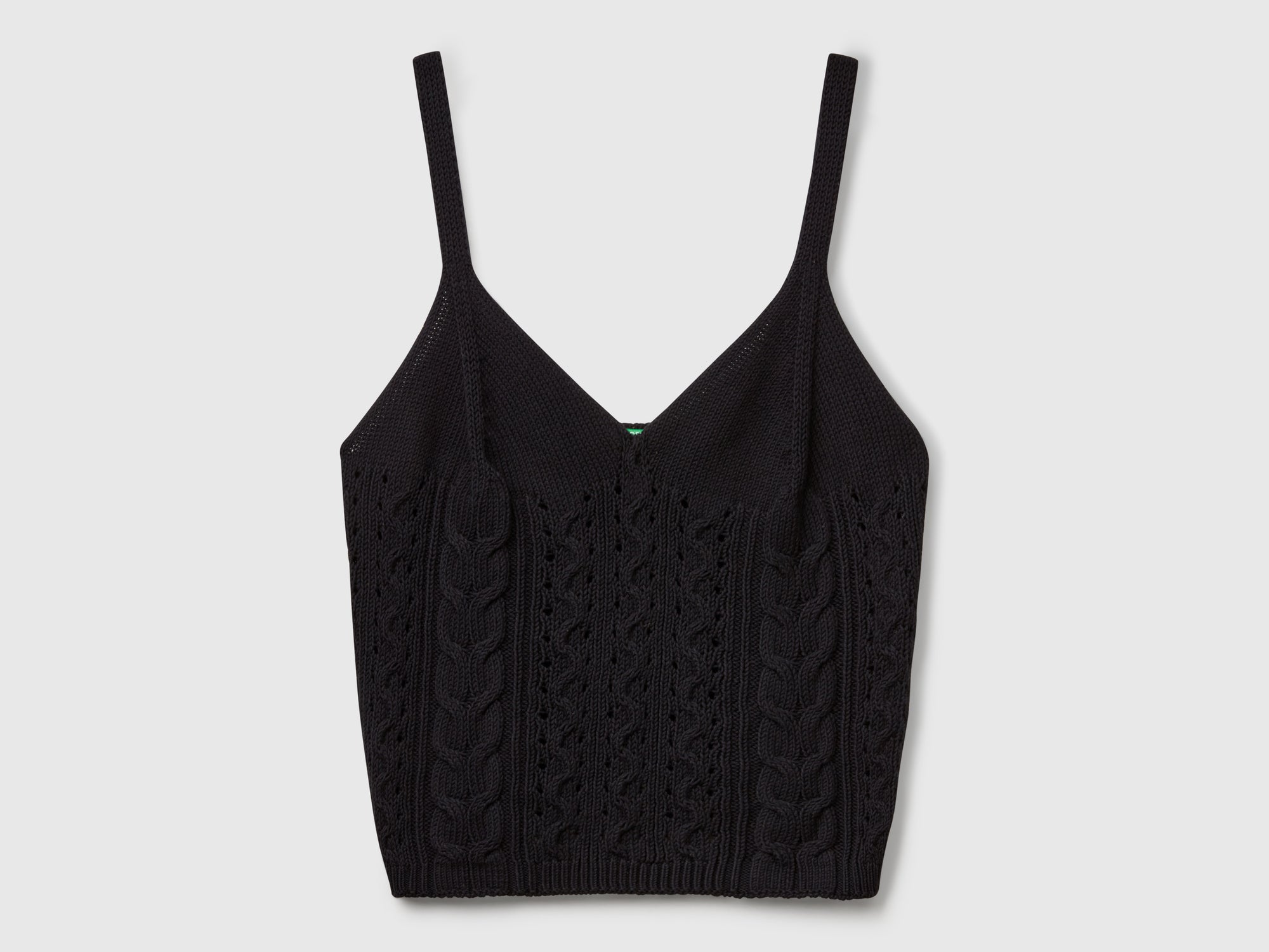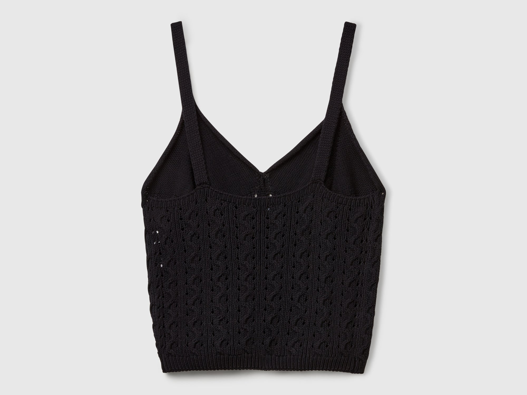 Top in maglia di puro cotone con lavorazione in punto crochet. Spalline regolari e scollo a V. Per look cool e leggeri, dal gusto romantico.