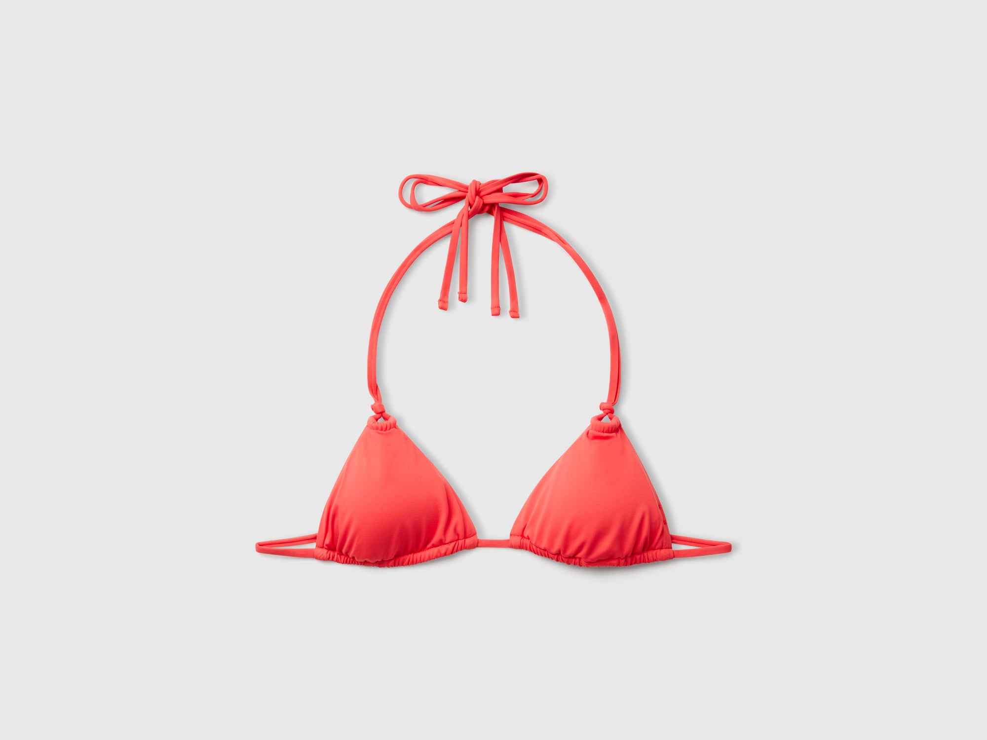Reggiseno mare a triangolo scorrevole coppa B, dotato di imbottitura estraibile. Doppie spalline da allacciare al collo e lacci da annodare sulla schiena. Questo capo contiene ECONYL® una fibra di nylon rigenerata al 100%, proveniente da reti da pesca usate e altri scarti di nylon.