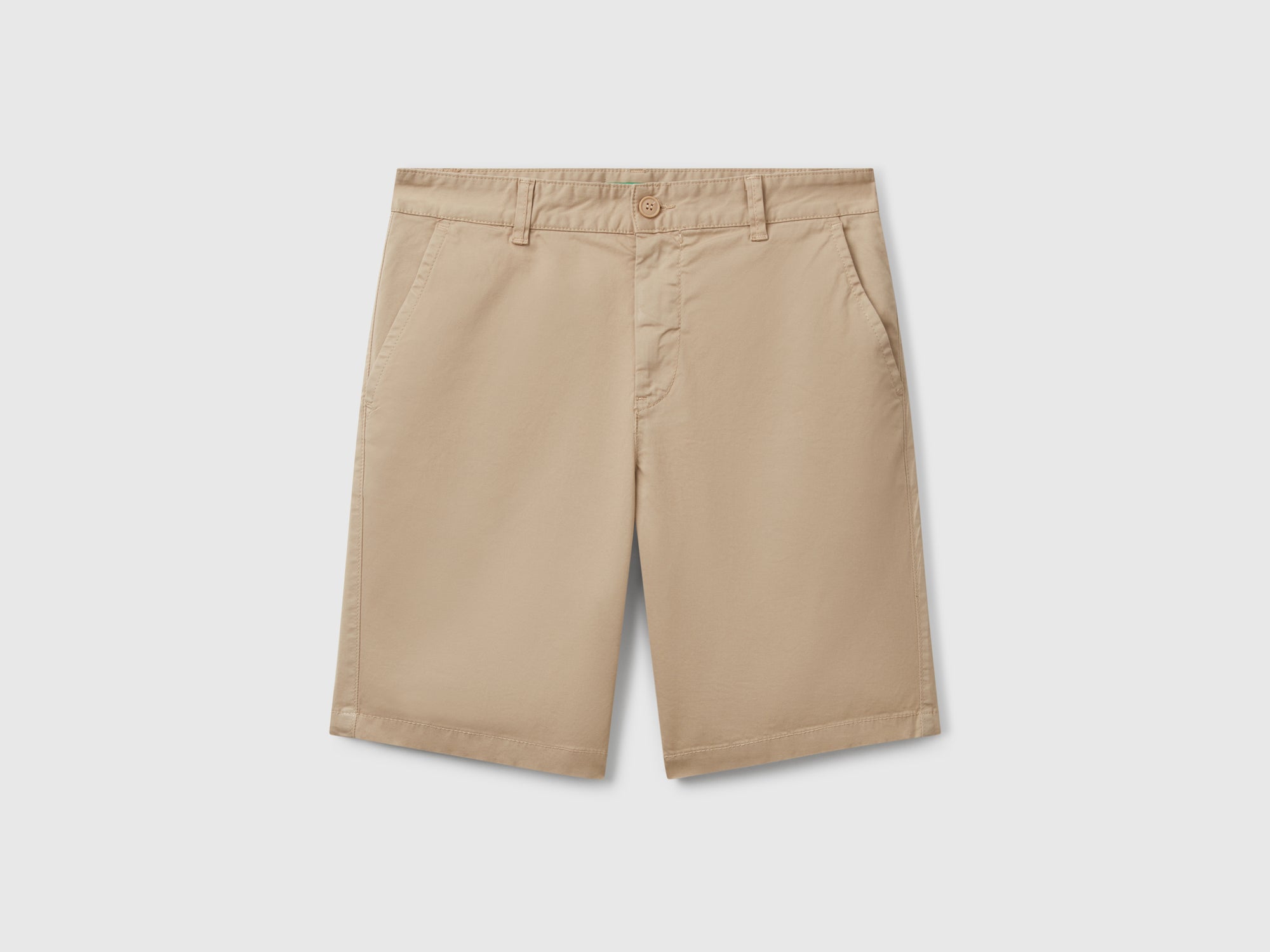 Pantaloni corti modello chino in cotone elasticizzato. Tasche davanti e taschini sul retro. Vita con passanti, apertura con zip e bottone. Stile casual chic per un capo quotidiano.