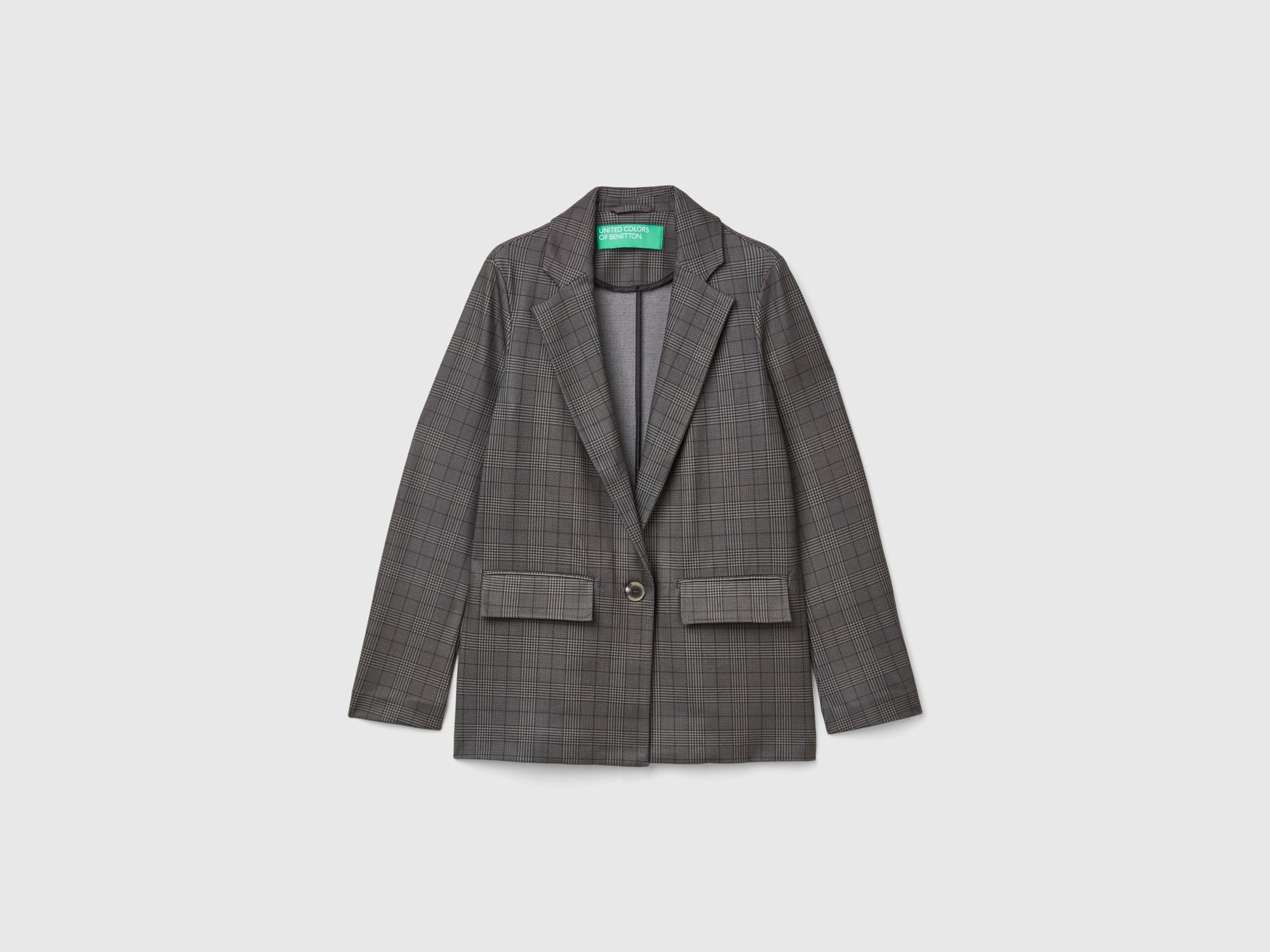Chaqueta sin forro de mezcla de viscosa elástica con estampado de pata de gallo. Corte recto con cuello de solapa y largo a la cadera, para un look impecable. Cierre con un botón y bolsillos con solapa en la parte delantera. Estilo clásico, reinterpretado en clave moderna.