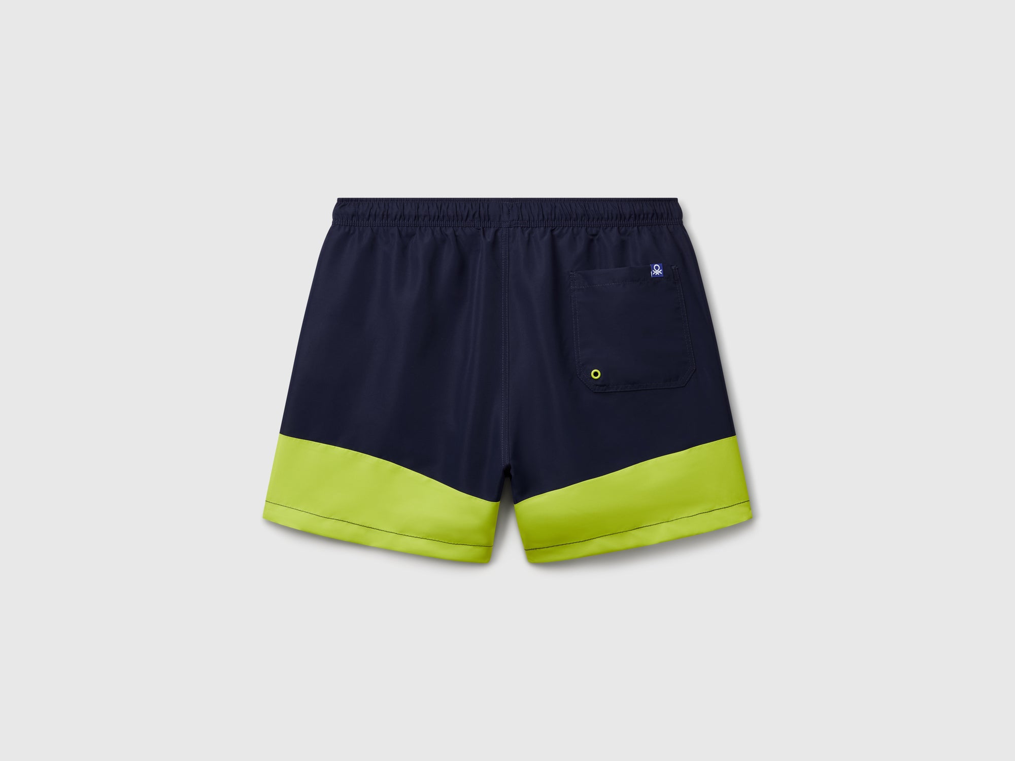 Costume boxer foderato con design color block. Vita elasticizzata con coulisse taschino applicato sul retro. Logo stampato verticalmente lungo la gamba destra.