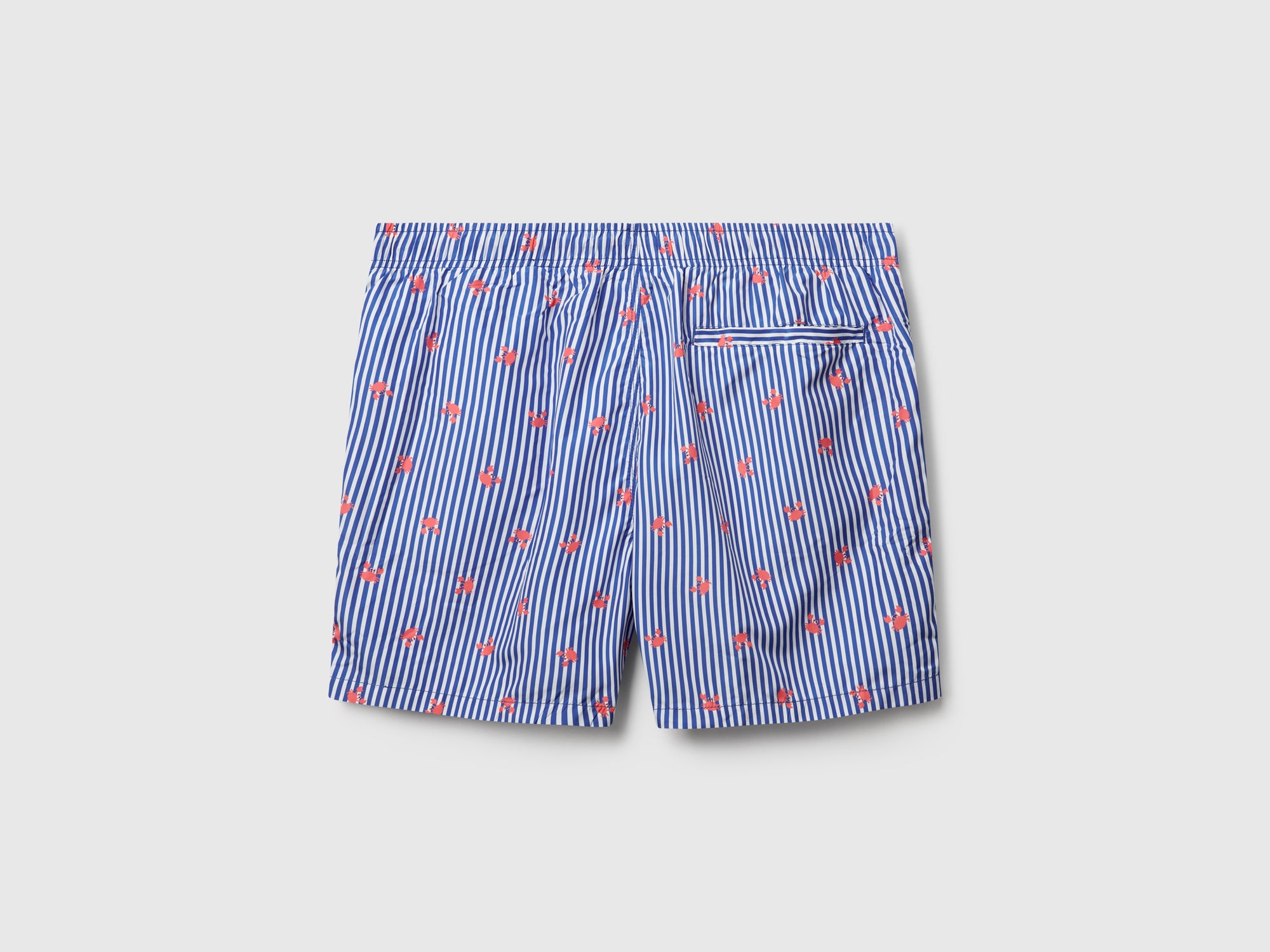 Costume boxer in nylon con stampa fantasia. Vita elasticizzata con coulisse, taschino a filetto sul retro. Dotato di bustina stampata nello stesso tessuto dove riporre il capo. Questo capo è realizzato con almeno il 20% di poliestere riciclato certificato RCS. Certificato da ICEA - ICEA - TX - 611. I prodotti certificati secondo il Recycled Claim Standard (RCS) contengono contenuto riciclato che è stato verificato in modo indipendente in ogni fase della filiera, dal riciclatore al prodotto finito.