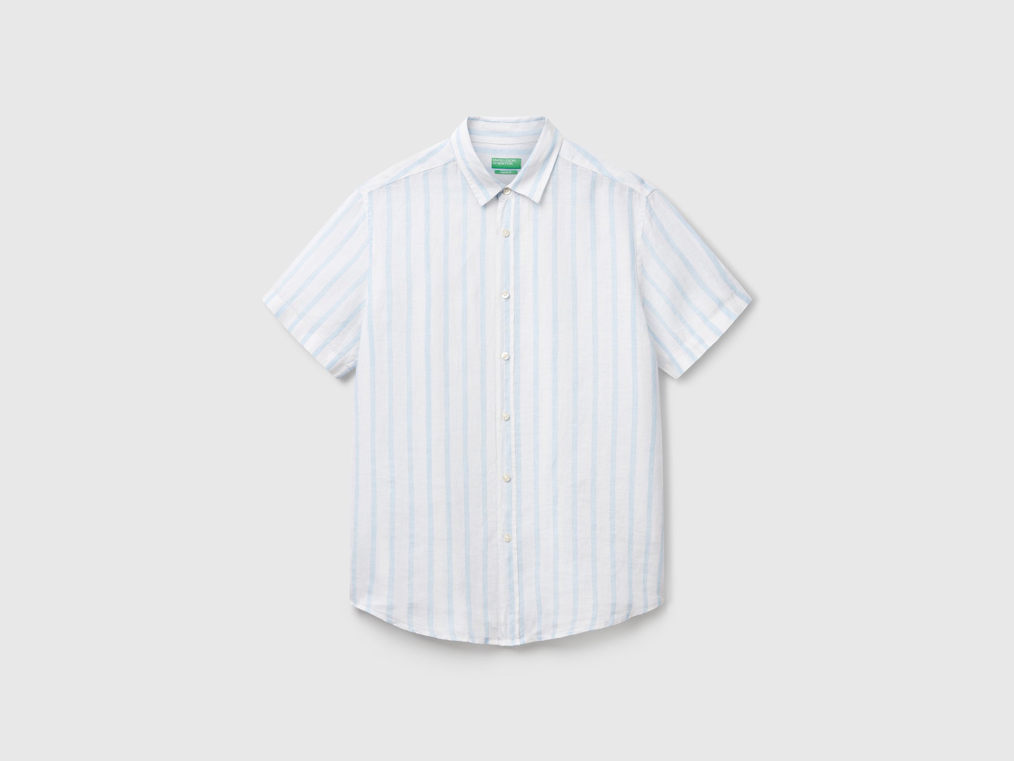 Camicia a manica corta in puro lino tinto filo dalla vestibilità regolare. Colletto classico, abbottonatura frontale e fondo stondato. Un must have del guardaroba casual, da indossare con manica arrotolata per un look ancora più sportivo. Articolo realizzato con materiale in 100% lino coltivato in Europa.